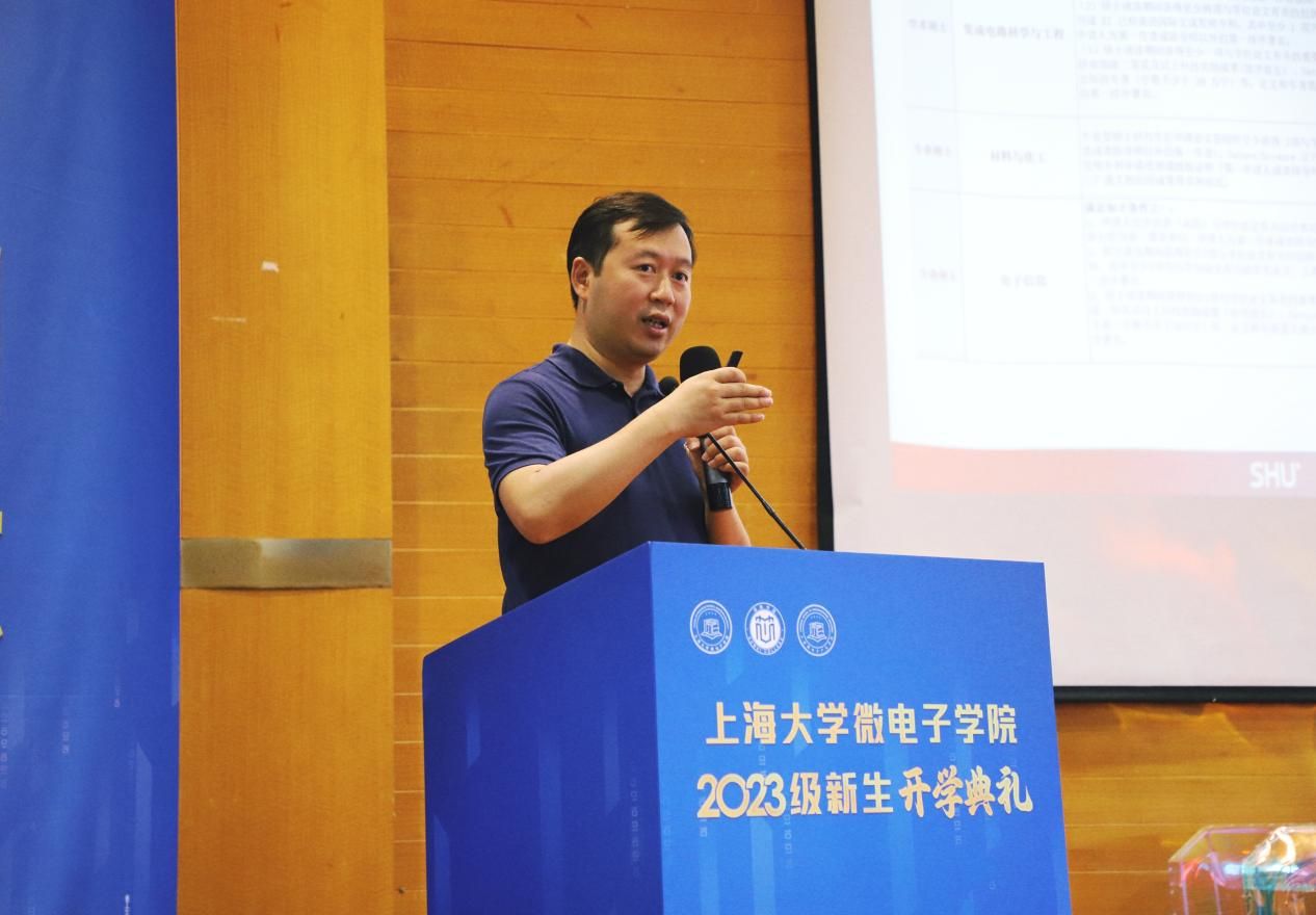 8月27日上午,上海大学微电子学院、溯微书院、上海微电子产业学院2023级本、硕、博新生开学典礼在嘉定校区图书馆报告厅举行。上海大学副校长汪小帆、微电子学院党委书记郭纯生,溯微书院院长、微电子学院执行院长张建华,溯微书院执行院长、微电子学院党委副书记、副院长袁铭,微电子学院副院长胡挺、周婷、路秀真,校党政办主管赵志华出席典礼,教师代表任开琳副教授、学院辅导员、全体2023级新生共同参加活动。本次典礼由21级硕士研究生付涵博和23级硕士研究生王飞主持。