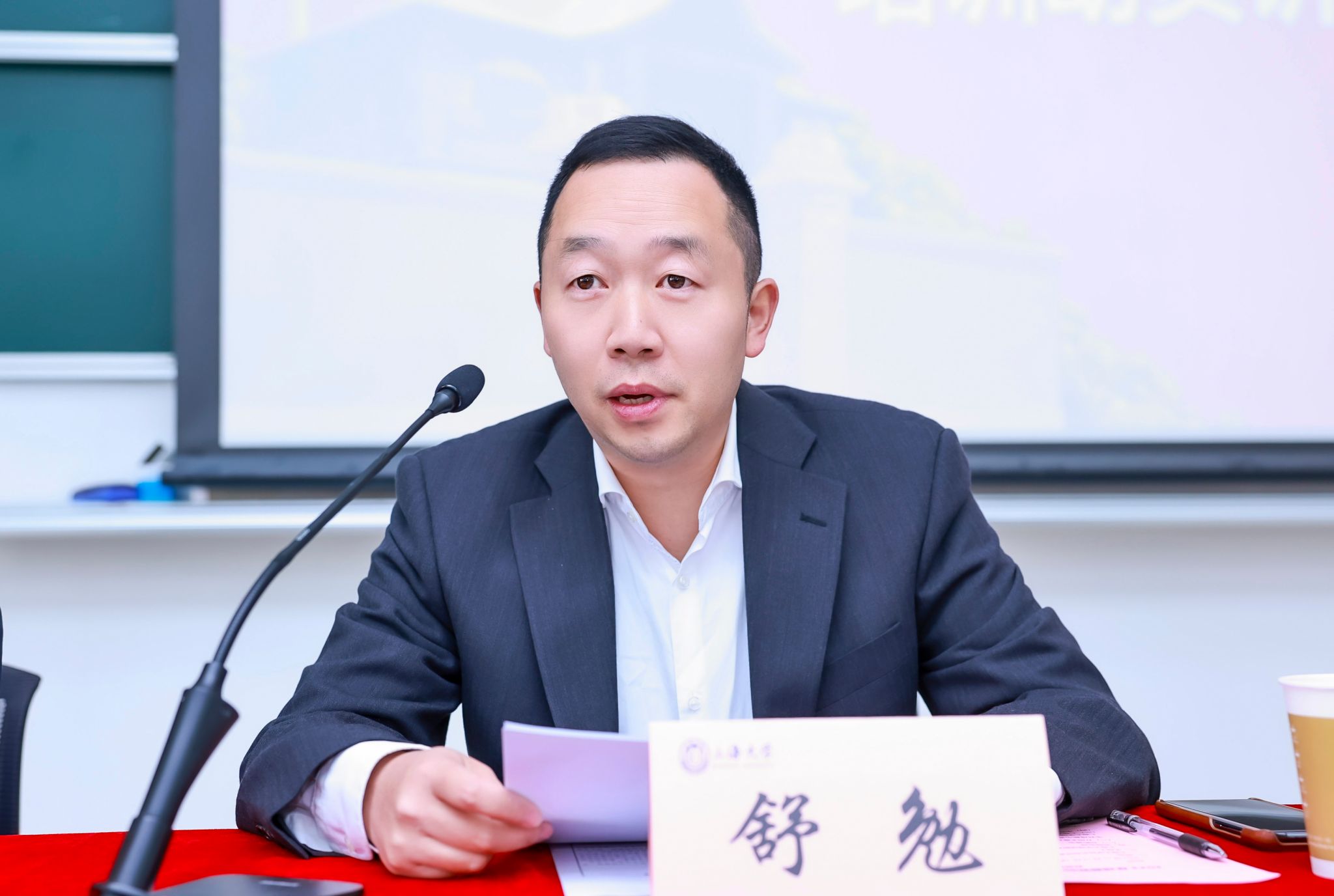 胡大伟致欢迎辞。他代表学校向来自成都市从事宣传工作的学员“战友”们表示热烈欢迎。他提到,习近平总书记近日对宣传思想文化工作作出重要指示,“宣传思想文化工作事关党的前途命运,事关国家长治久安,事关民族凝聚力和向心力”,强调要“着力提升新闻舆论传播力引导力影响力公信力”,在此背景下我们举办“2023年成都市新闻发言人专题培训班”就更有特别的意义。随后他向学员们简要介绍了上海大学老校长钱伟长的办学理念和事迹、上海大学的发展历程、红色基因传承以及大类招生和通识课程等人才培养的特色。他希望学员们能够在五天的时间里,学有所悟、学有所获,提升宣传思想文化工作能力。
