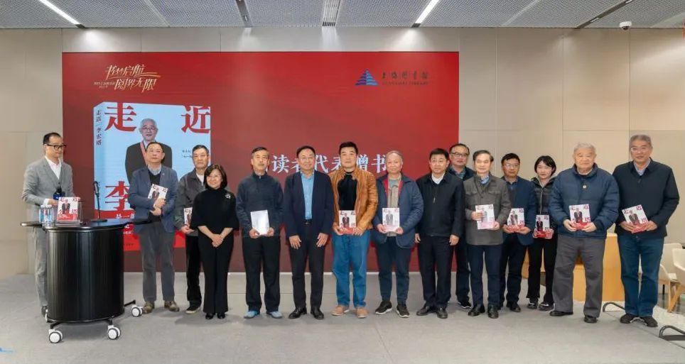 上海大学党委副书记欧阳华、上海图书馆党委书记楼巍、浦东新区政协党组副书记、副主席王小君,共同代表主办单位向读者代表赠书。机关党委书记钱峰作为读者代表接受赠书。