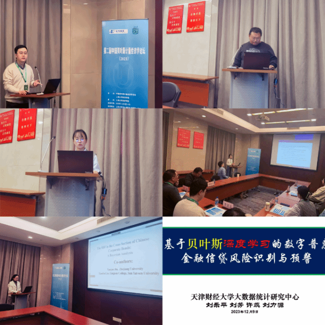 分论坛二由扬州大学王斌教授主持。天津财经大学刘乐平教授介绍了其团队基于贝叶斯深度学习的数字普惠金融信贷风险识别与预警的研究成果,以提升普惠金融信贷风险识别的准确性和实时性,优化信贷风险预警机制提出应对策略。湖南大学李晨星教授研究了隔夜市场已实现波动性,通过对日内和隔夜已实现波动率进行联合建模,表明隔夜波动率和随后的日内波动率之间存在很强的持久性。江苏师范大学刘鹏飞教授提出了基于均值中值和贝叶斯自举的改进Bagging算法以克服传统Bagging集成回归算法的聚合模式对异常值较为敏感的缺陷。首都经济贸易大学汪念玲老师重新检验了IV回归模型,并关注不完全工具变量。通过在排他性限制条件上施加先验,建立了用于参数识别、不确定性量化和IV比较的统一贝叶斯框架。浙江大学陈逸凡博士在随机贴现因子框架下研究了中国公司债券市场横截面收益变化的决定因素。通过高维数据的贝叶斯方法,借助经济驱动的尖峰和板状先验来识别SDF的关键组成部分。上海大学于恩平博士介绍了一种新的金融极差序列非线性分析模型——函数系数条件自回归极差模型,扩展了主流的非对称极差波动率模型,提供了一个更具适应性的框架来刻画非线性特征。