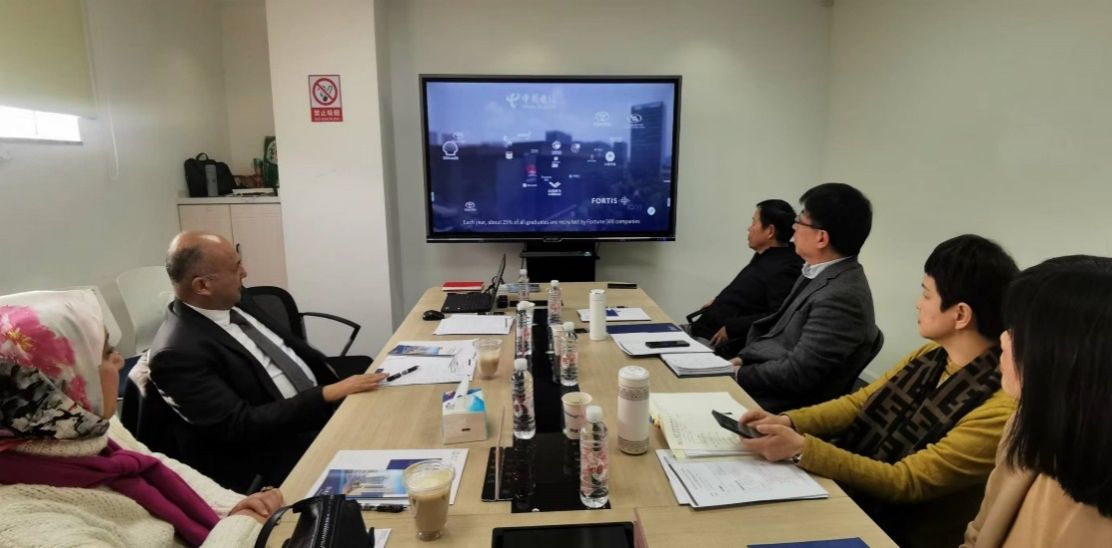 12月20日,埃及亚历山大大学中文系主任霍萨姆·艾哈迈德·埃拉巴迪教授、爱因夏姆斯大学中文系那希德教授访问我校,国际合作处处长崔巍、国际教育学院院长李颖洁、孔子学院办公室主任徐晓红、国际教育学院姚喜明教授共同会见了到访的客人。