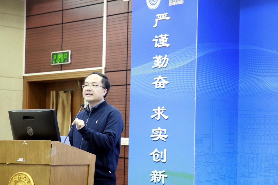 学术年会组委会主席沈瑶教授对第五届学生学术年会评审情况做了详细的介绍。参赛论文经过组委会收集、查重、初评打分推荐、修改、查重、复评打分推荐、结果汇总、评奖公示八个环节开展。每篇论文在初评、复评环节,均有三位评审团教师对其推荐、打分或排序,确保各个环节的公平、公正、公开。最终共计产生一等奖7项、二等奖9项、三等奖10项,优胜奖14项。