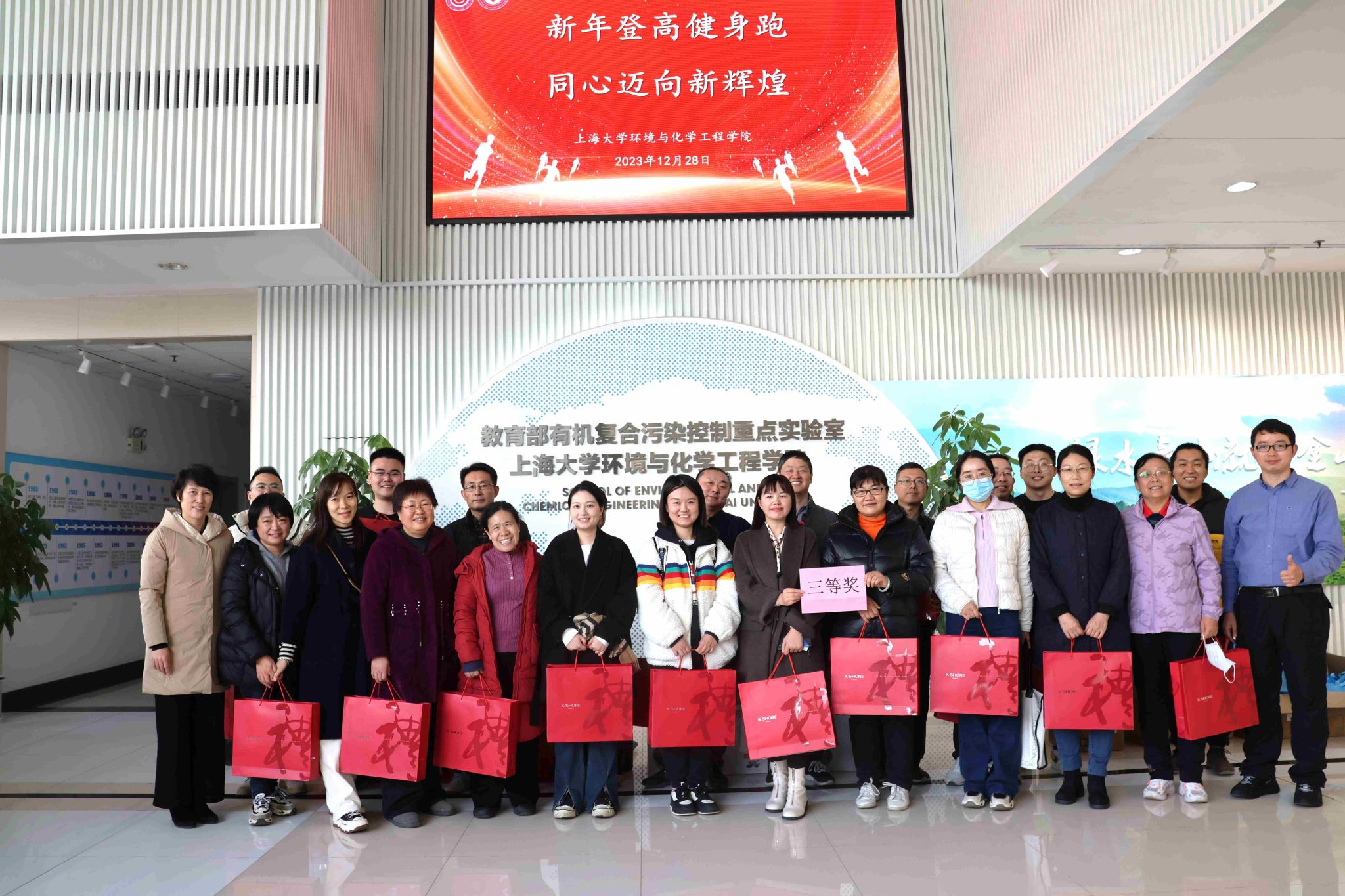 为迎接2024年元旦佳节,营造喜庆热烈、文明祥和、健康和谐的节日氛围,提高师生健身意识,12月28日下午,环化学院“2024迎新登高健身跑”活动在宝山校区东区火热举行。本次活动以“新年登高健身跑,同心迈向新辉煌”为主题,全院约70余名教职工积极参与,学院党委书记钱冬英、常务副院长王勇等领导班子成员出席活动。活动由学院工会主席朱惠娟主持。