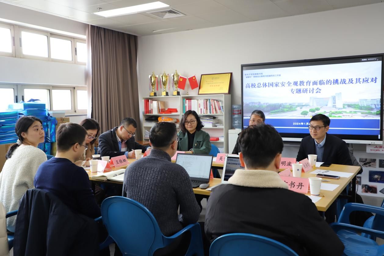 为进一步在育人一线落实习近平总书记提出的“国家安全是头等大事”的要求,2024年1月2日,溯微书院联合沪上相关高校、兄弟院系专家举行高校总体国家安全观教育面临的挑战与应对专题研讨会。复旦大学社会发展与公共政策学院党委副书记刘明波、华东理工大学艺术设计与传媒学院党委副书记王珊、上海科学技术职业学院马克思主义学院院长王依娜,上海大学文学院原党委书记吴仲钢、上海美术学院党委副书记宋国栓、马克思主义学院副教授王金伟以及相关辅导员参加此次研讨会,此次研讨会也是“避雷针”网络安全教育书院辅导员工作室的年度建设内容。研讨会由微电子学院党委副书记、副院长,溯微书院执行院长、工作室负责人袁铭主持。