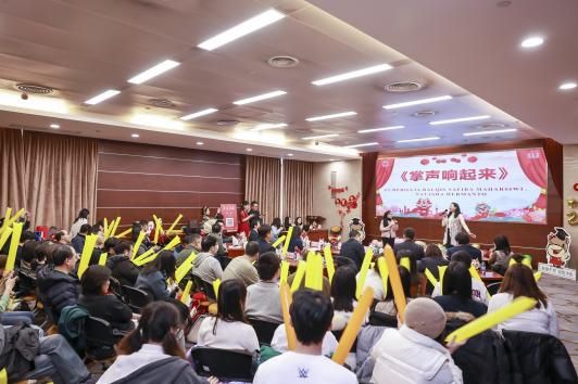 大会穿插着国际学生歌曲演唱《掌声想起来》;学工团队活力动感的歌舞表演《手扶拖拉机斯基》;行政支部带来歌曲《十年》回忆“筑梦”年会共同走过的十年;师生节目表演《如愿》、《new boy》、《这世界那么多人》等节目以及新进教师集体亮相和龙年教师送祝福等环节,形式丰富、精彩纷呈、气氛热烈、高潮迭起。