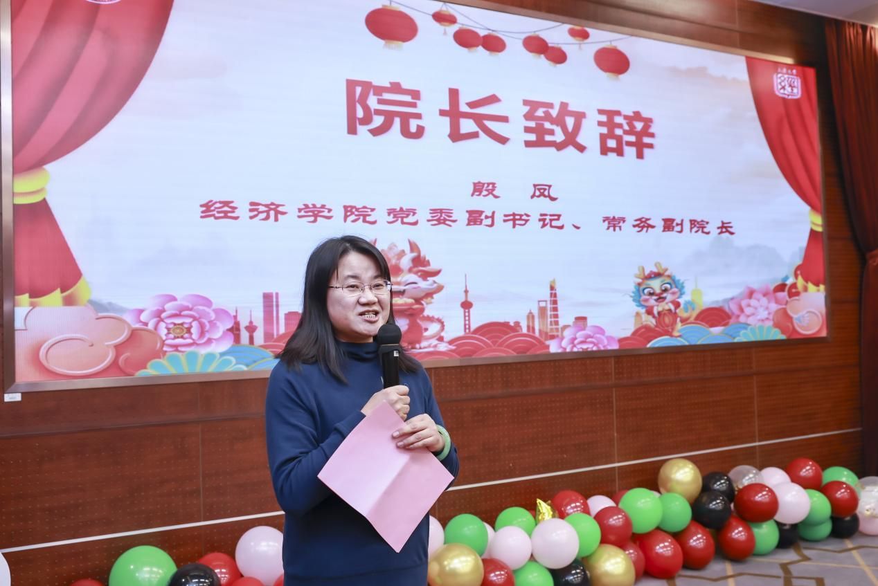 大会以“不忘初心”“携手奋进”两个篇章总结2023年,展望2024年。主题年会在激励人心的经院2023年工作回顾视频中拉开序幕。经济学院党委副书记、常务副院长殷凤在致辞中对学院这一年来取得的成绩表示肯定,2024年将聚力谋远、开创新篇,希望经济学院师生永葆赤诚之心、拼搏之劲、奋斗之姿、团结一致、赓续前行,以实干担当开启新征程。