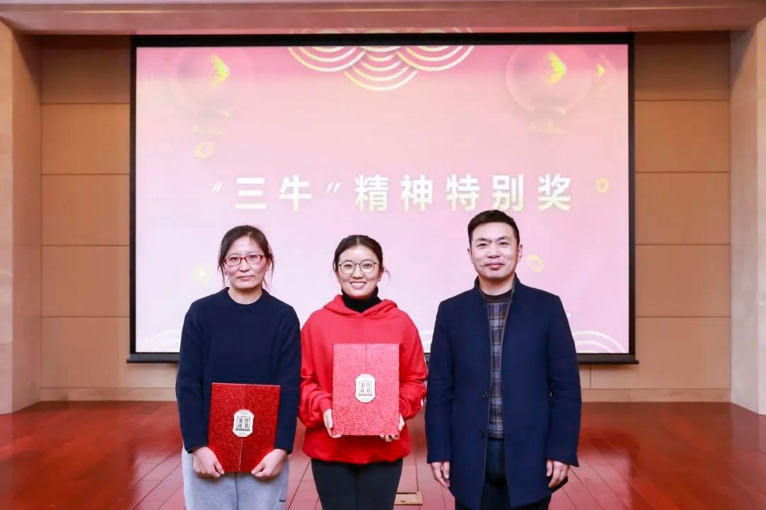 为了贯彻落实习近平总书记的关于发扬孺子牛、拓荒牛、老黄牛的精神,国际部连续三年设立“三牛精神”特别贡献奖项。2023年度,曾艳、彭亚男获得“创新发展拓荒牛”奖项;李慧、刘赛获得“人才培养孺子牛”奖项;陈颖、戎艳获得“勤恳奉献老黄牛”奖项。他们敢为人先,心系学生,踏实敬业,全力为国际部的发展拉犁耕耘、爬坡向前。