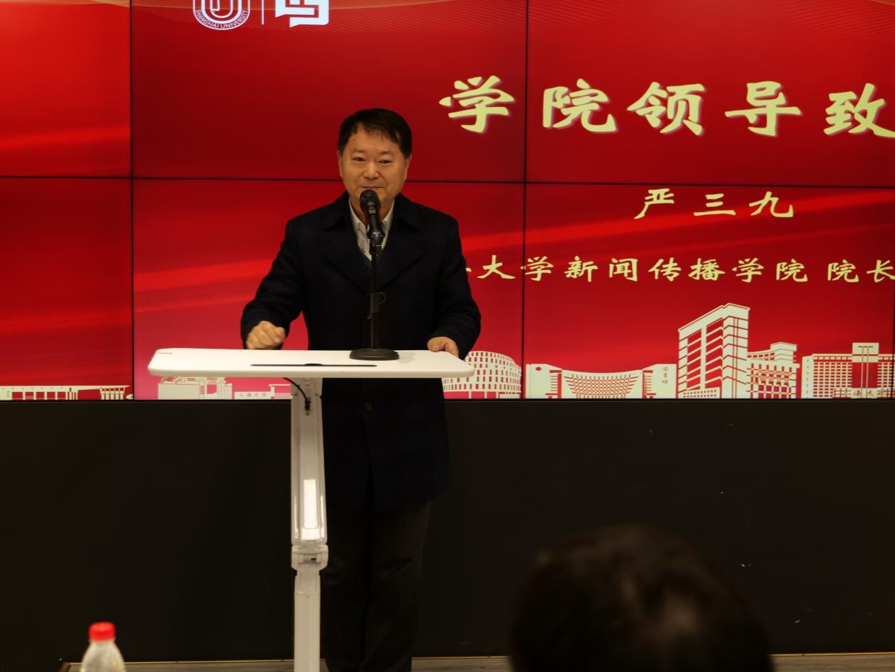 新闻传播学院院长严三九教授在致辞中表示,学院要继续围绕“五五战略”,提高有组织的科研水平,形成工作合力,做到“人人在团队”;在国家级、上海市以及行业层面,努力做到“人人有项目”;以科研引领学术创新,以科研反哺教学,确保科研重大项目增量、提升学术论文质量,将科研创新成果与方法融入日常教育、学术研究与实践之中,努力做到“人人作贡献”。