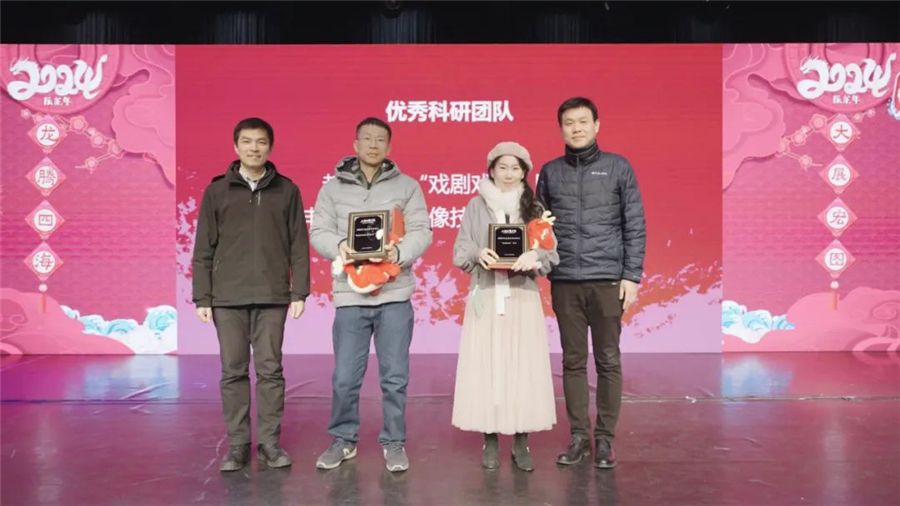 上海大学文科处副处长金桥与齐伟副院长为科研创新标兵、优秀科研团队颁奖。