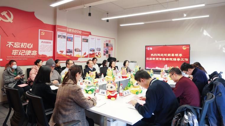 1月25日下午,上海大学团委书记王鸿栋,创新创业学院副院长王驰,校团委副书记姜晓庆、富旭一行赴新闻传播学院调研指导共青团工作。新闻传播学院党委书记王晴川,党委副书记、副院长王智君,挂职副院长、智能传播系主任王虎,团委副书记、副教授易红发,青年教师代表张林,团委书记赵琳,团委副书记朱珈仪、薛堯云及学生代表共同参与。调研会议在延长校区智能媒体实验中心413会议室举行。学院团委书记赵琳主持会议。