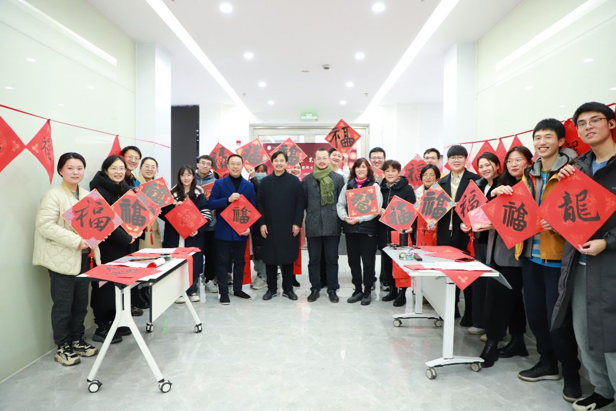 为弘扬中华优秀传统文化,丰富微电子学院师生文化生活,学院工会、青联会于2月1日在学院A楼大厅开展“福龙迎新春,笔墨中国‘芯’”师生写春联送祝福活动。活动邀请了中国美术家协会会员、中国壁画学会会员、上海美术家协会会员、上海大学上海电影学院讲师王味之,上海大学书画协会会长、上海大学上海美术学院教师、书法家钱楷,与学院师生一道挥毫创作出自己心仪的春联、福字。学院党委副书记、副院长、分工会主席袁铭,副院长路秀真以及学院师生、嘉定校区相关老师等参加了活动。