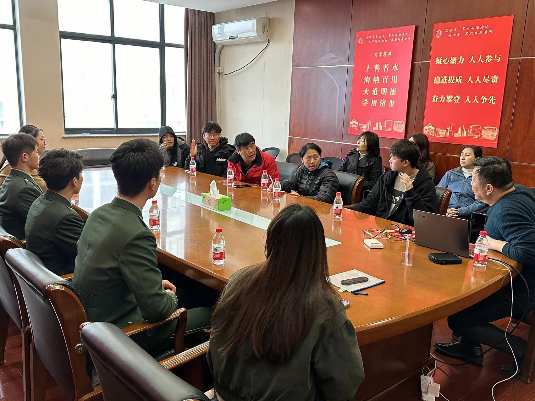 为配合2024年大学生征兵前期工作的进行,扩大征兵宣传的影响力,提高大学生应征入伍的热情,3月15日上午,通信学院邀请上海大学武装部副部长赵俊与有参军意向的本科毕业班和非毕业班学生进行座谈,会议由学院征兵工作联络人严思远老师主持。