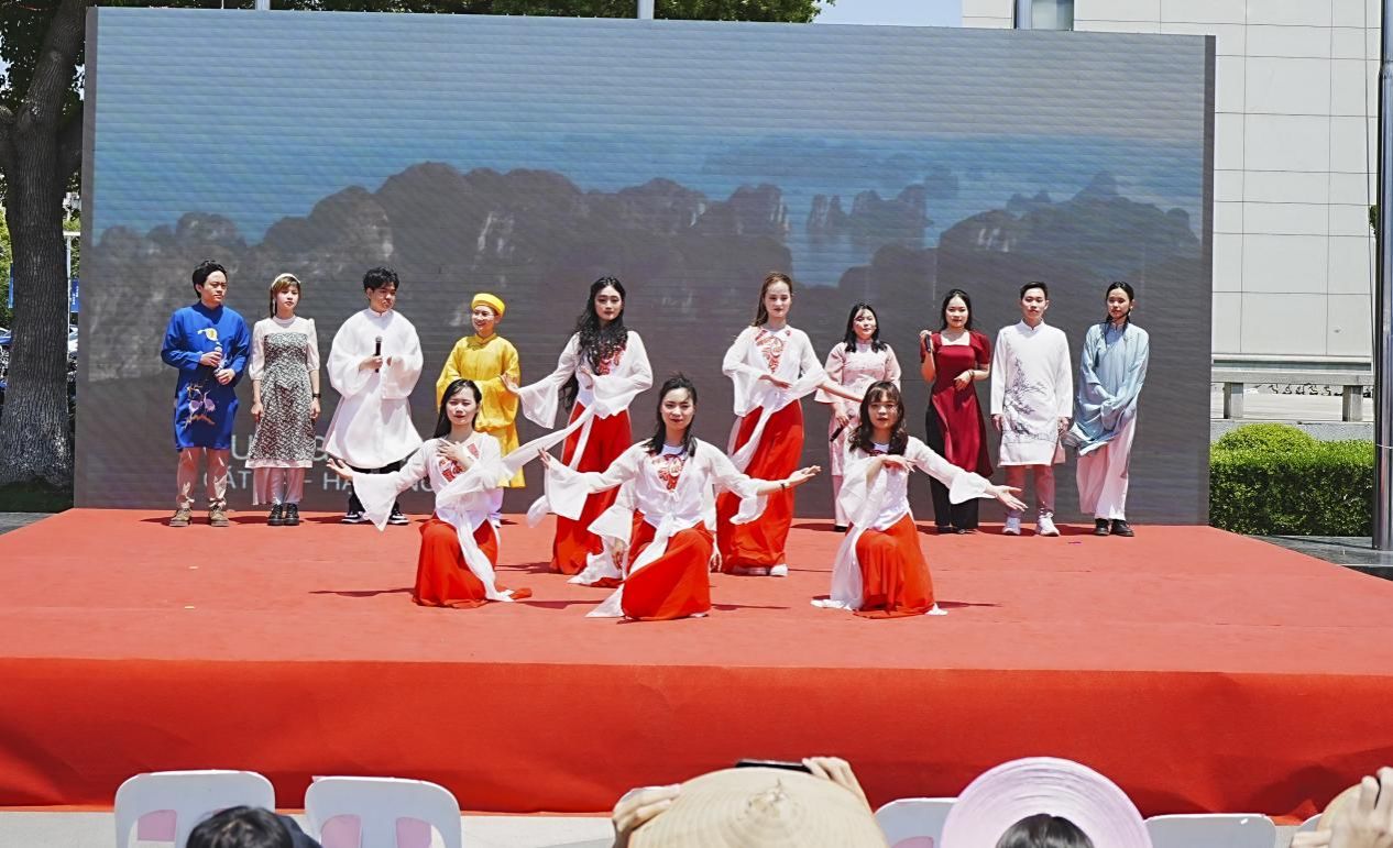 品味多样文化,领略五洲风情。5月10日上午,上海大学第十一届国际文化节开幕式暨第十七届国际文化风情展于宝山校区拉开帷幕。今年是甲辰龙年,也恰逢我校纪念上海大学建校102周年、庆祝上海大学新合并组建30周年,本次国际文化节以“龙腾四海,共谱新篇”为主题,来自50多个国家的上千名中外师生共同参与。上海大学副校长于雪梅,上海教育国际交流协会秘书长李维平,学校相关部处、学院领导以及校外合作单位代表等嘉宾出席了活动开幕式。
