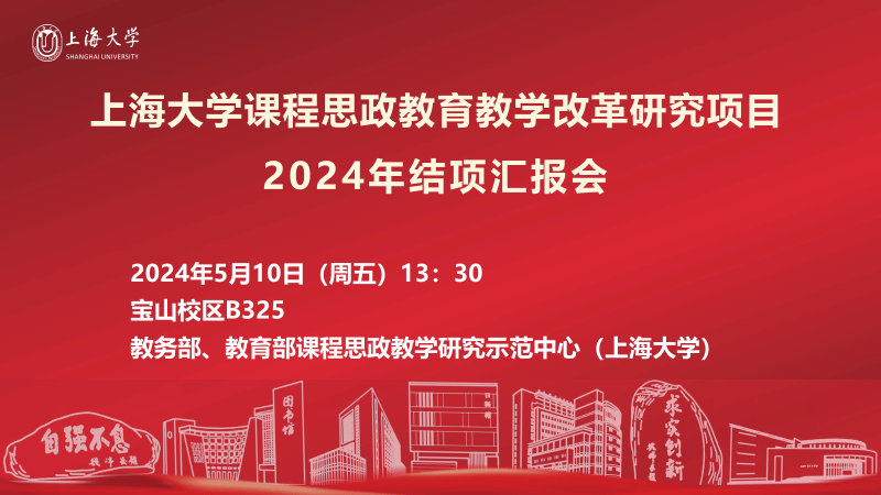 5月10日,上海大学于宝山校区B325举行2024年课程思政教育教学改革研究项目结项汇报会。校党委常委、副校长聂清与会并致辞。教务部副部长、课程思政教学研究中心负责人顾晓英教授担任主持。数十名来自各学院的教师线上线下观摩。