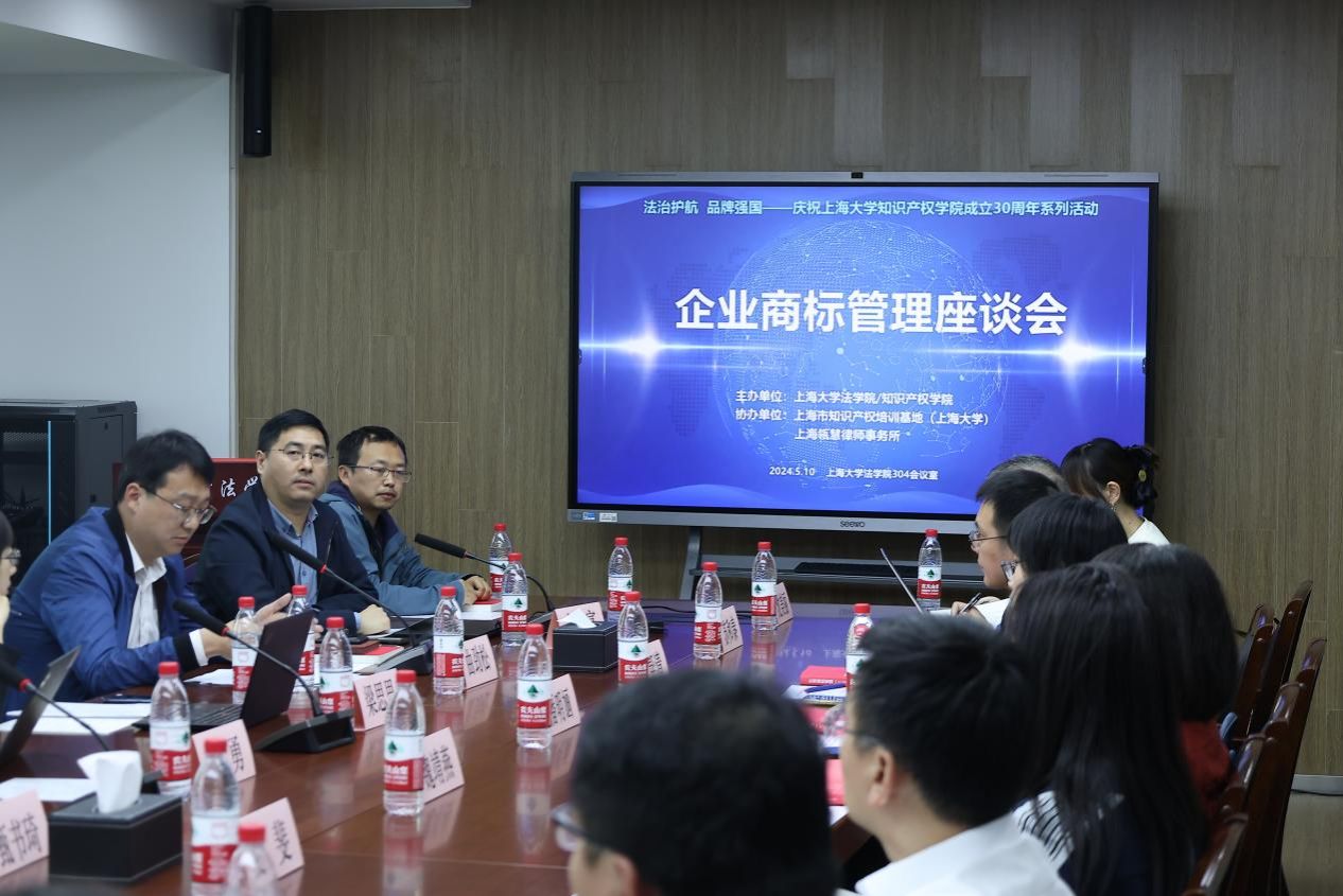 5月10日下午,庆祝上海大学知识产权学院成立30周年系列活动之“企业商标管理座谈会”在宝山校区法学院304会议室顺利举行。本次座谈会由上海大学法学院/知识产权学院主办,上海市知识产权培训基地(上海大学)、上海瓴慧律师事务所协办,来自博世、采埃孚、联合利华、美泰等知名公司的商标负责人、法务总监,以及法官、高校学者等嘉宾,和法学院知识产权研究生参加了本次座谈会。