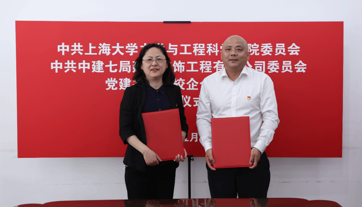 5月17日,中建七局建筑装饰工程有限公司党委与上海大学力学与工程科学学院党委党建联建暨校企合作签约仪式在上海大学宝山校区HE楼207会议室举行。中建七局建筑装饰工程有限公司党委副书记、工会主席魏光威,人力资源部(干部人事部)经理李书玮,上海分公司党总支书记、总经理郑明兴、党总支副书记、工会主席蒋红中,力学与工程科学学院党委书记郭兴明,党委副书记、纪委书记丁珏,党委副书记、副院长陈中元、及固体力学研究所党支部、土木教工结构党支部的党员代表出席了本次活动。