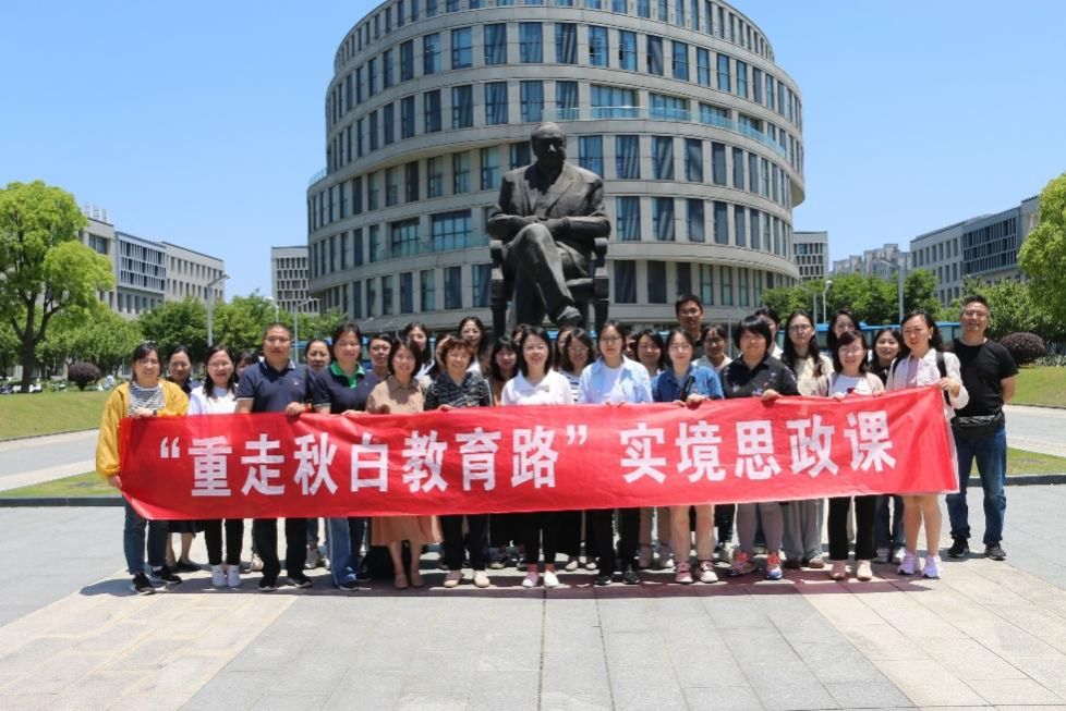 5月18日,常州市觅渡教育集团三校区所有党员教师及部分管理团队成员一同走进瞿秋白曾任教的上海大学,开展“重走秋白教育路”实境思政课活动。上海大学社会学院党委副书记、副院长张乃琴,常州市觅渡教育集团校长、党支部书记徐志彤,上海市高校思想政治理论课名师工作室“胡申生工作室”负责人、上海大学教授胡申生以及社会学院部分师生党员共同参与。