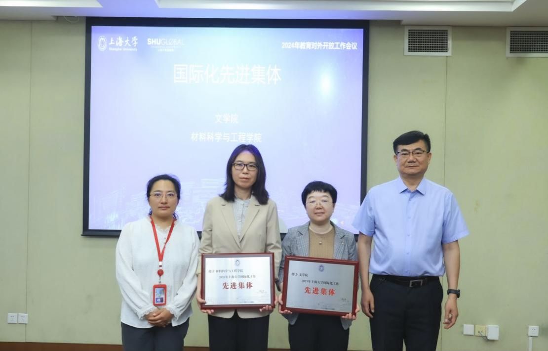 会上,表彰了2023年国际化工作先进个人、先进集体和特殊贡献奖。经济学院毛雁冰、环境与化学工程学院刘建勇、理学院孙建才、机电工程与自动化学院张顺琦、文学院郭鸣获得国际化工作先进个人奖;文学院、材料科学与工程学院获得国际化工作先进集体奖;上海大学超分子化学与催化研究团队(理学院)、上海设计 10x10 团队(上海美术学院) 获得国际化特殊贡献奖。