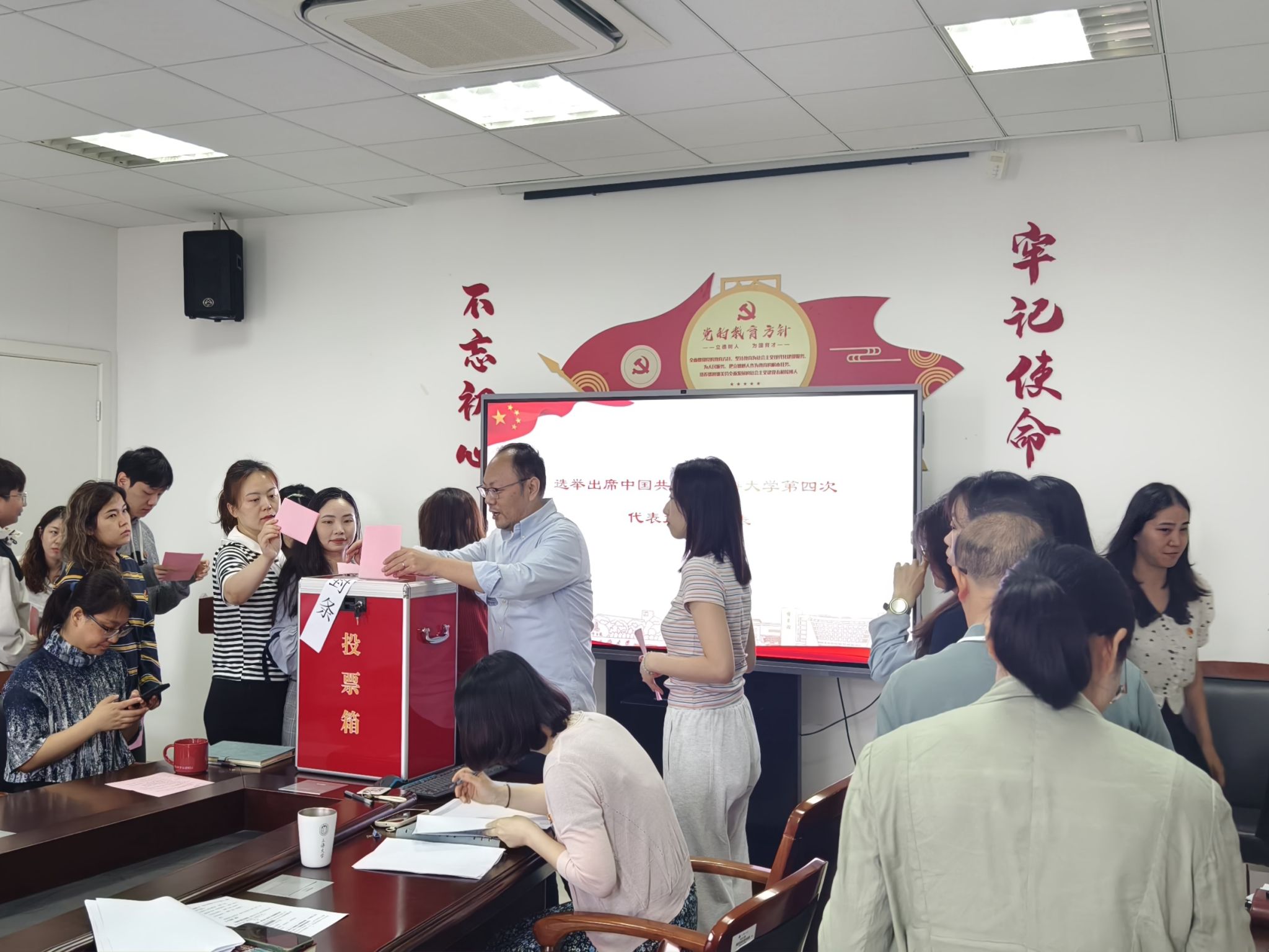 大会通报了社区学院推荐校第四次党代表大会代表候选人的总体情况,审议通过了选举办法和总监票人、监票人名单,宣布了计票人名单。经无记名差额投票选举、公开计票,选出出席中共上海大学第四次代表大会代表后,大会在国际歌中胜利闭幕。