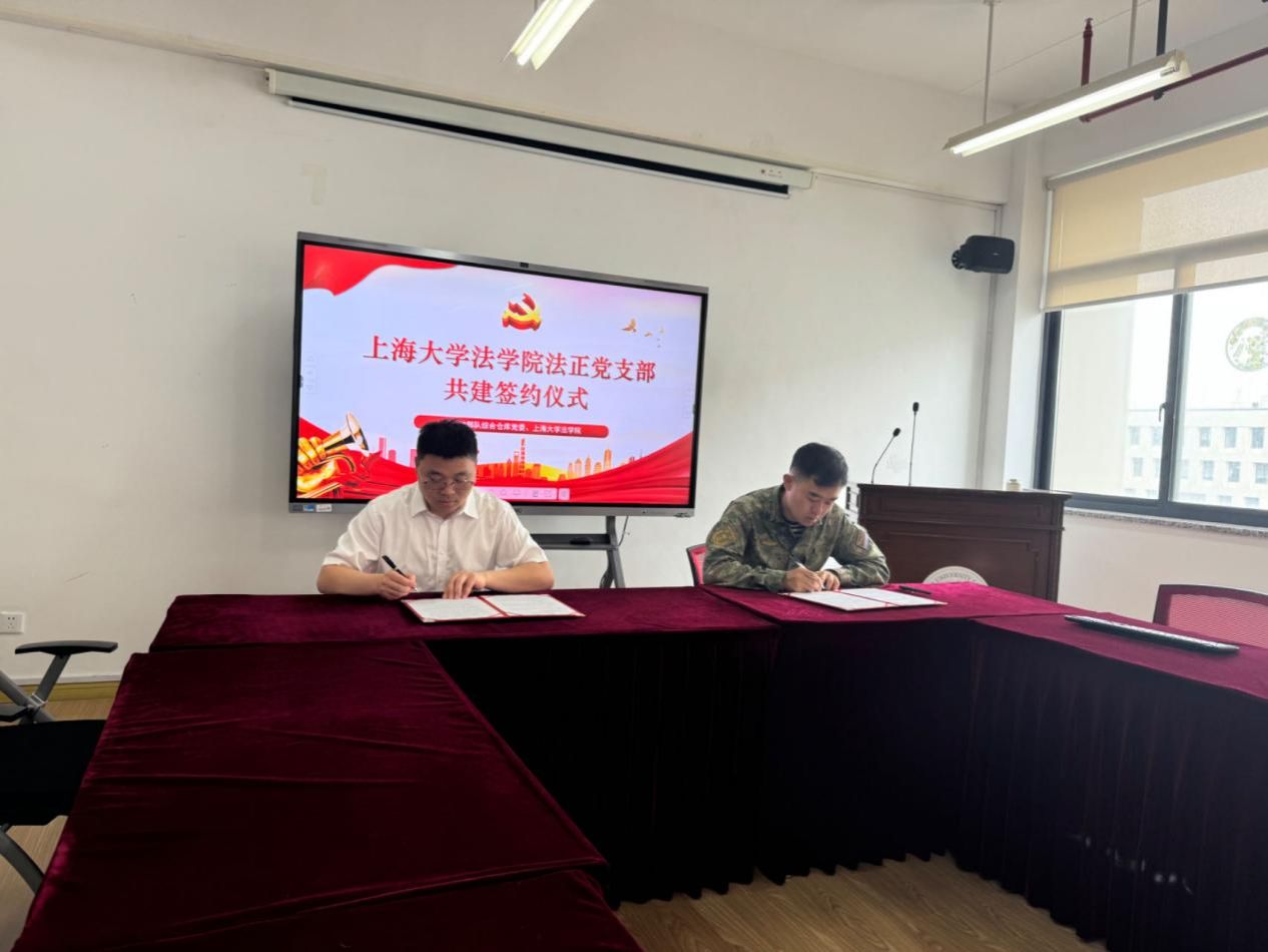6月13日上午,91528部队综合仓库党委与上海大学法学院法正党支部共建签约仪式在法学院504会议室顺利举行。91528部队综合仓库党委书记冯骁及官兵代表季镜一、周添、刘旭阳,上海大学法学院党委副书记、副院长于伟以及法正党支部党员代表们出席本次共建签约仪式。仪式由法学院研究生党建中心副主任高戊凡主持。