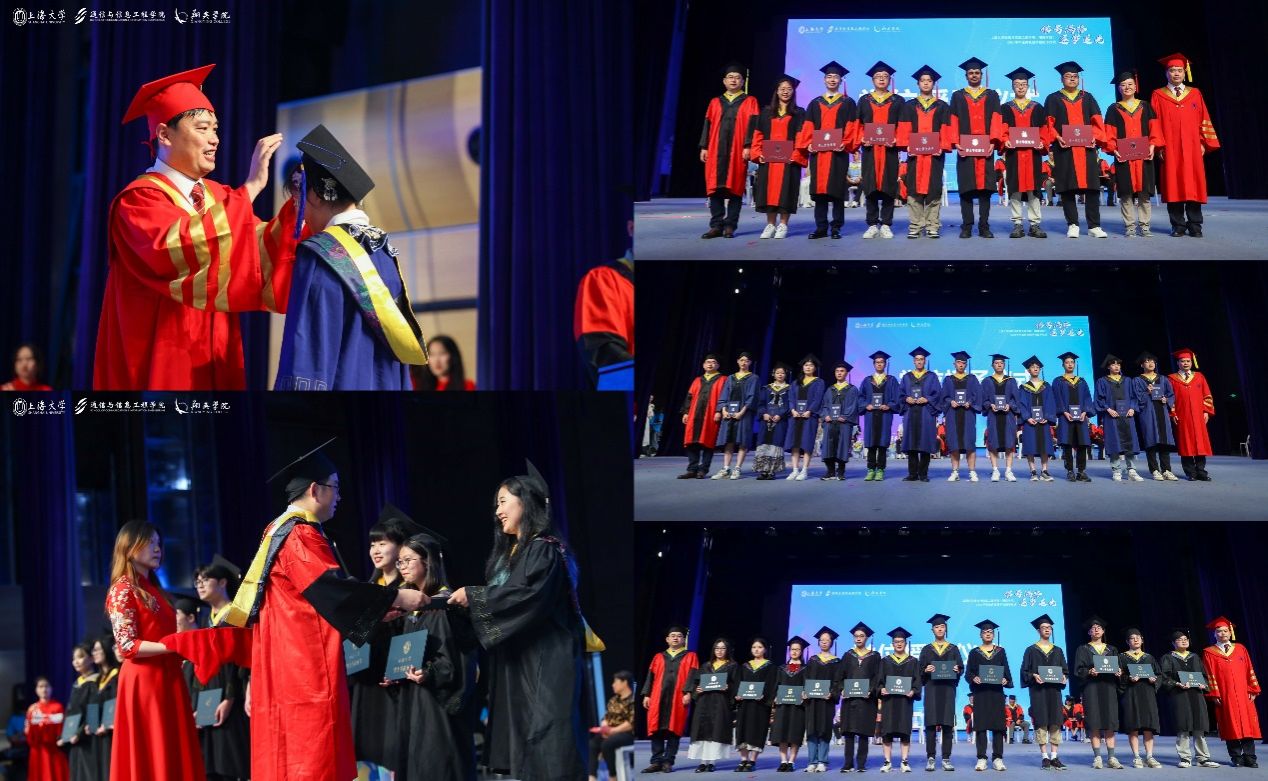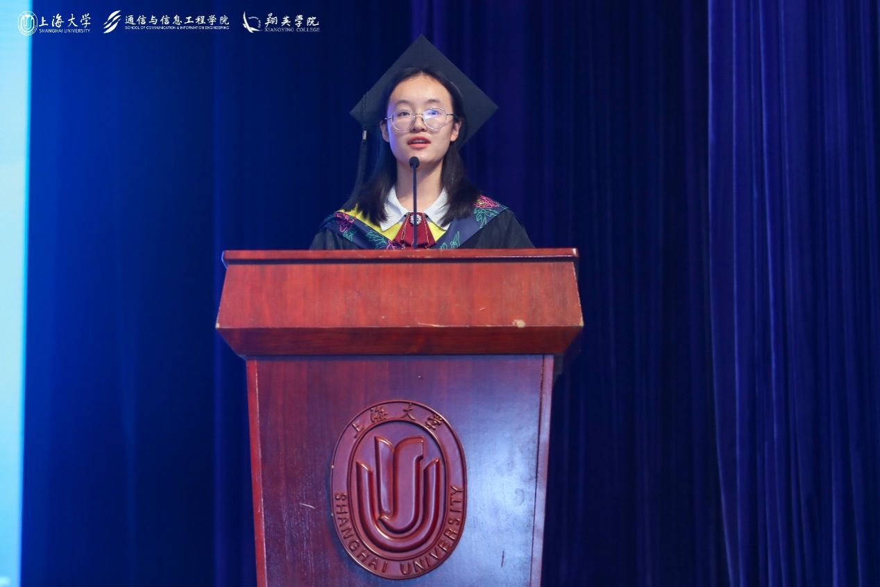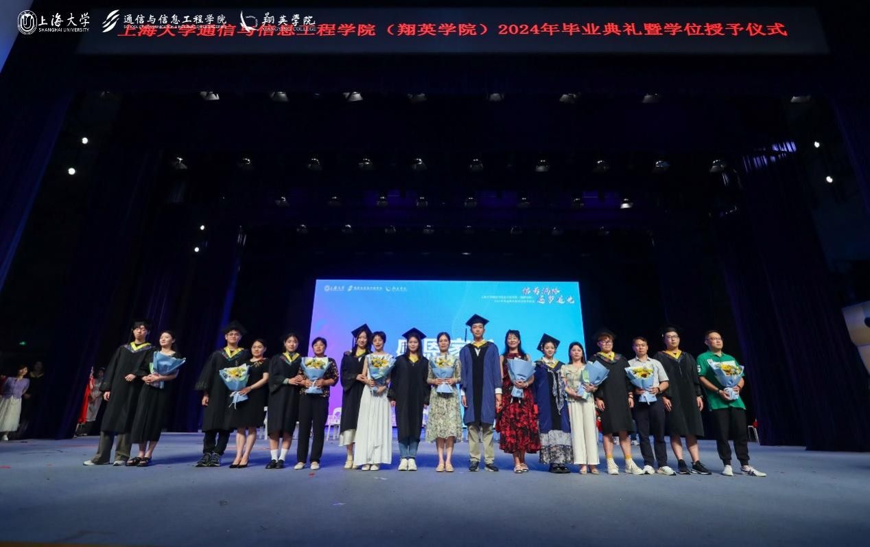 通信学院党委书记黄素娟,院长庞拂飞共同为上海市优秀毕业生和上海大学优秀毕业生代表颁发荣誉证书。