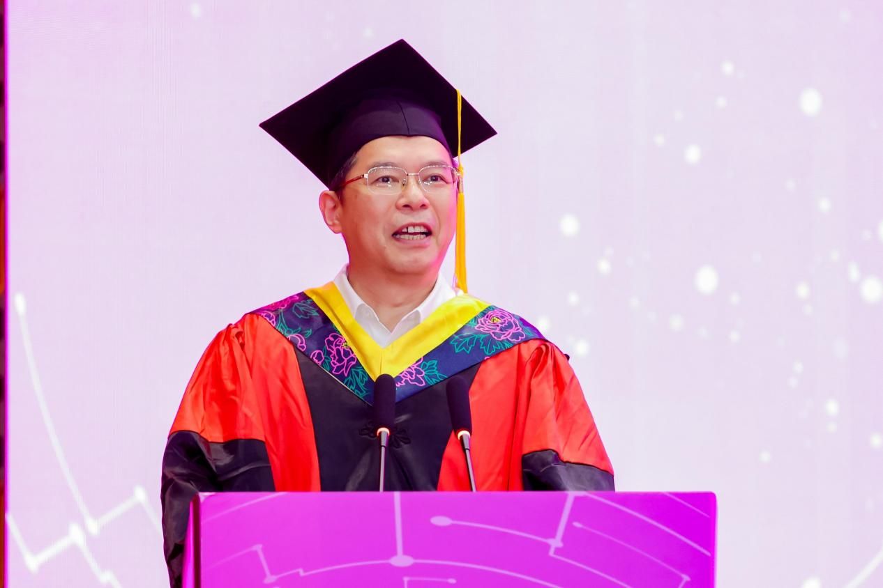 学院第一届本科毕业生校友代表、核芯智存科技有限公司测试工程师李渊明发言,激励同学们潜心工作,为集成电路事业发展贡献青春力量。
