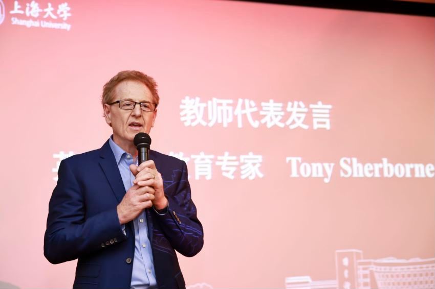 英国知名科学教育专家、第一节课授课教师Tony Sherborne,上海大学附属嘉定实验学校的孟金花老师分别代表教师和学员发言。