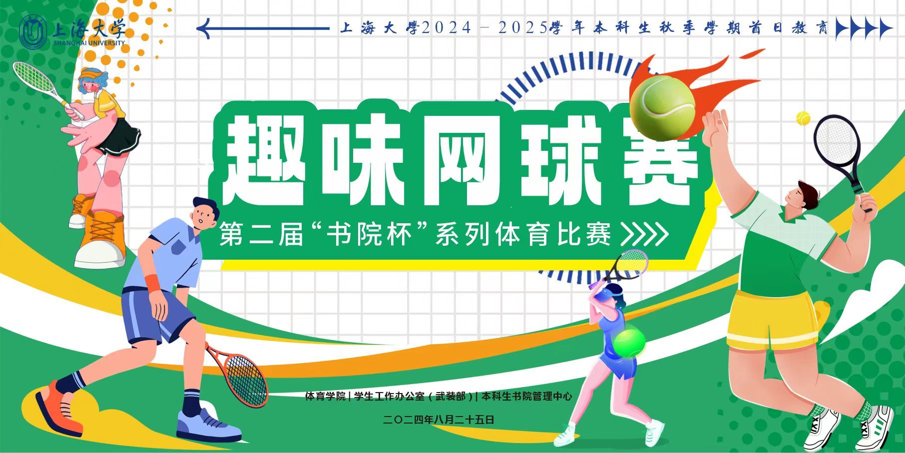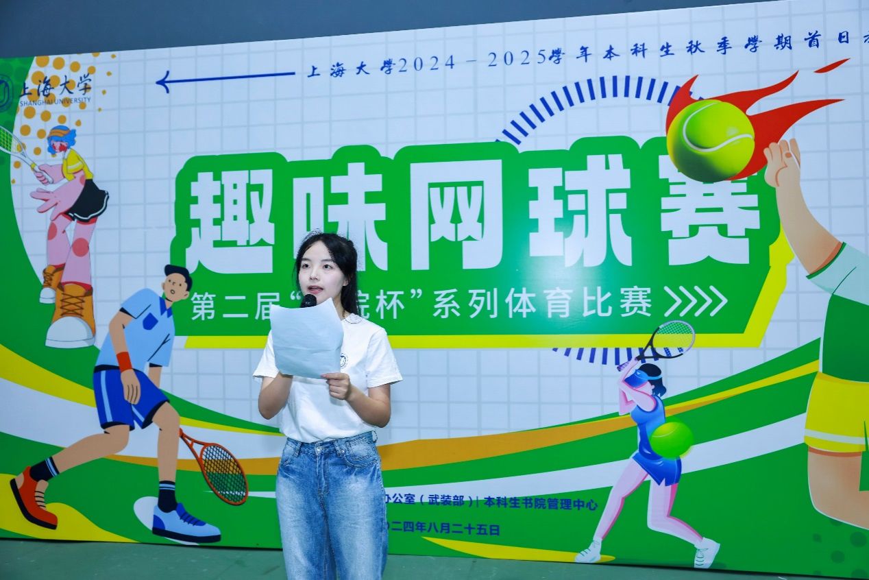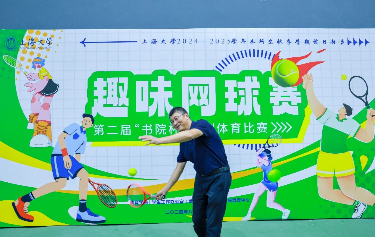 为学习贯彻习近平新时代中国特色社会主义思想、党的二十大精神,贯彻落实全国教育大会及《关于全面加强和改进新时代学校体育工作的意见》要求,弘扬奥运精神,强化体育教育,树立同学们“完全人格,首在体育”的思想观念,2024-2025学年本科生秋季学期首日,第二届上海大学“书院杯”系列体育比赛之趣味网球赛在宝山校区玄陵网球馆拉开帷幕。