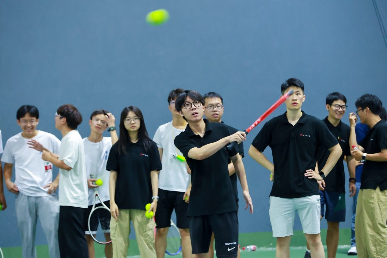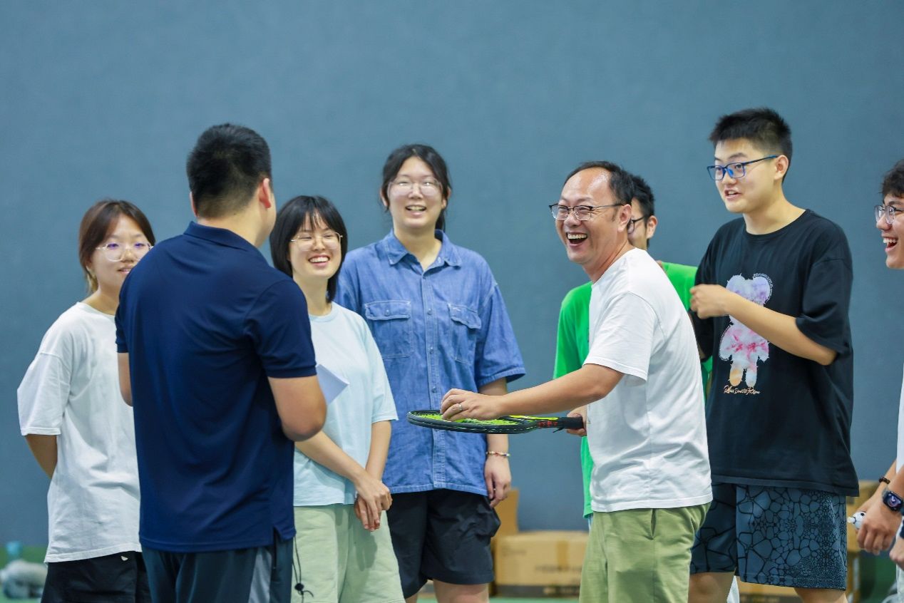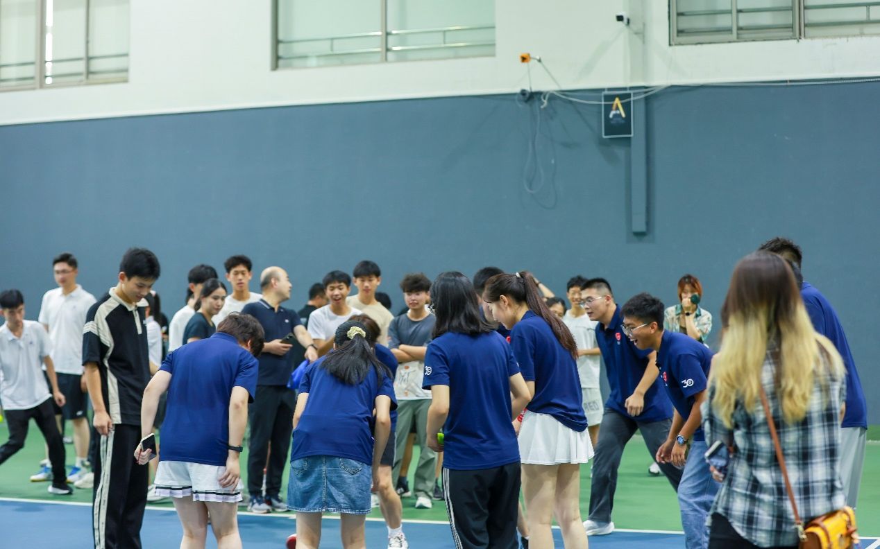 热身完毕,赛场已蓄势待发,激情与期待在空气中酝酿至沸点。在期待目光之下,刘兵老师为本次活动发球、开赛。网球划出一道完美的弧线,比赛的哨声也随之响起,标志着这场充满趣味与挑战的较量正式拉开序幕。