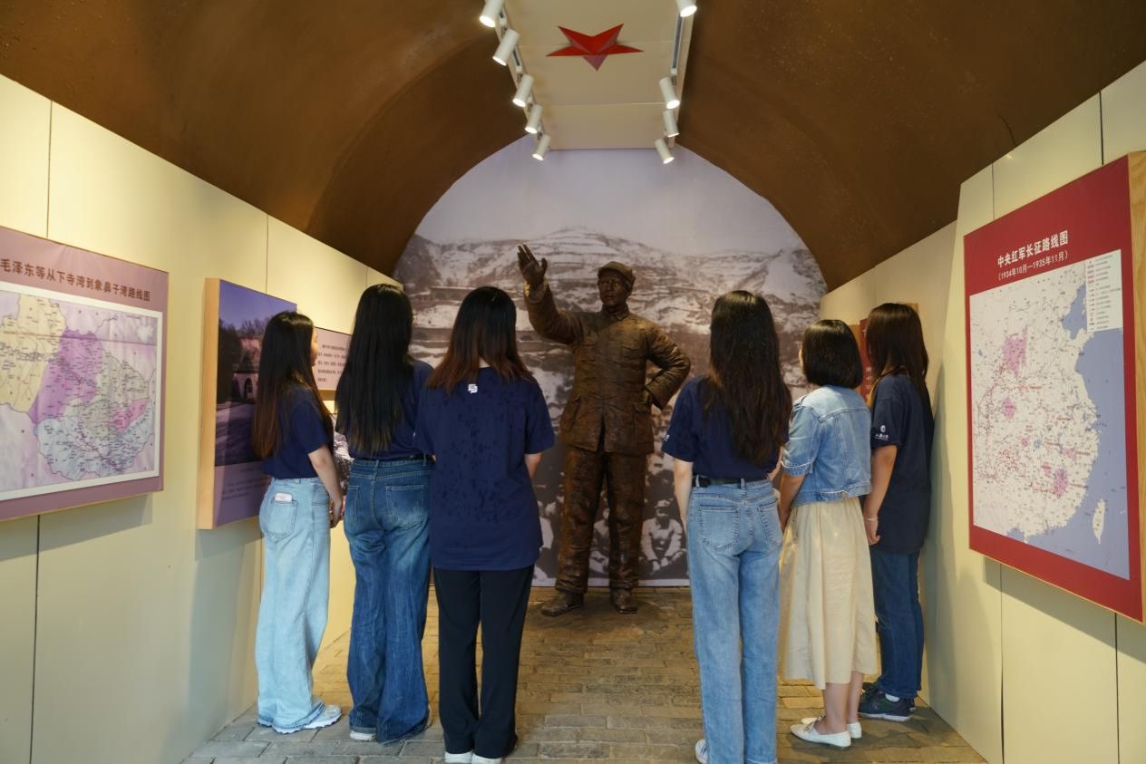 “长征是宣言书,长征是宣传队,长征是播种机”,甘泉县象鼻子湾村“雪地讲话”旧址,团队成员参观、学习和重温毛泽东“雪地讲话”重要内容。景区播放的毛主席仿声演讲,革命歌曲《三大纪律八项注意》,都在激励着大家不忘初心、牢记使命,将这种不畏艰难、勇往直前的精神融入到新时代的奋斗之中。