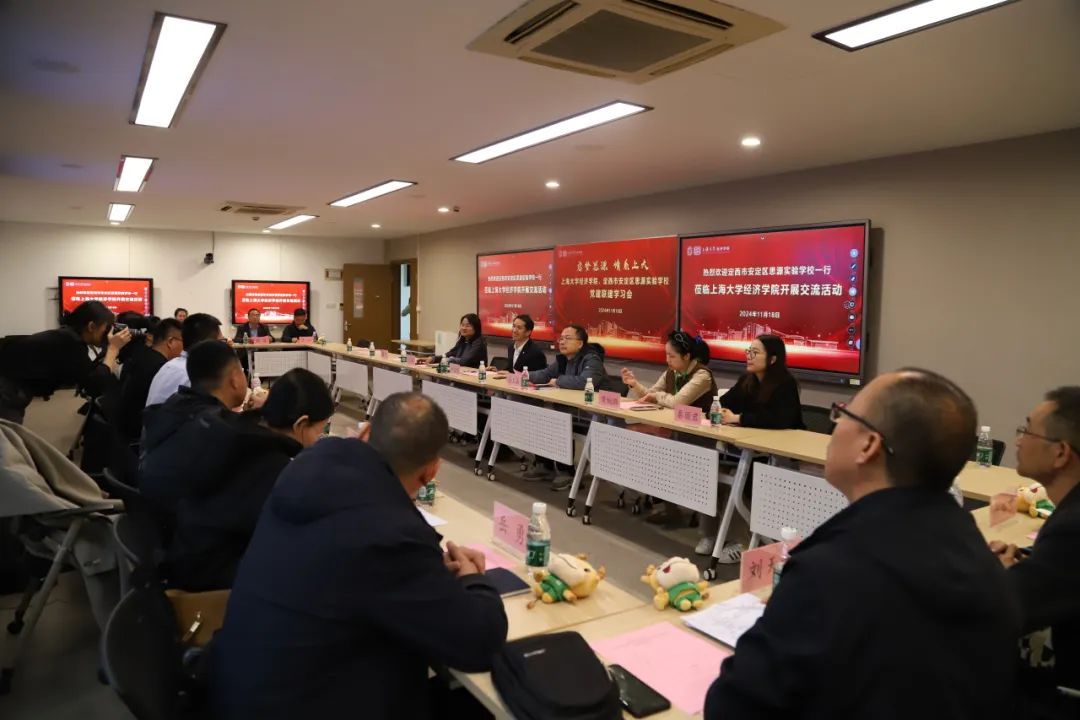 交流研讨中,上海大学经济学院的老师分享了在经济学教育领域的前沿理念与研究成果,并与思源实验学校的教师们探讨了如何将基础经济知识融入中小学教学,以提升学生的财经素养与综合素质。