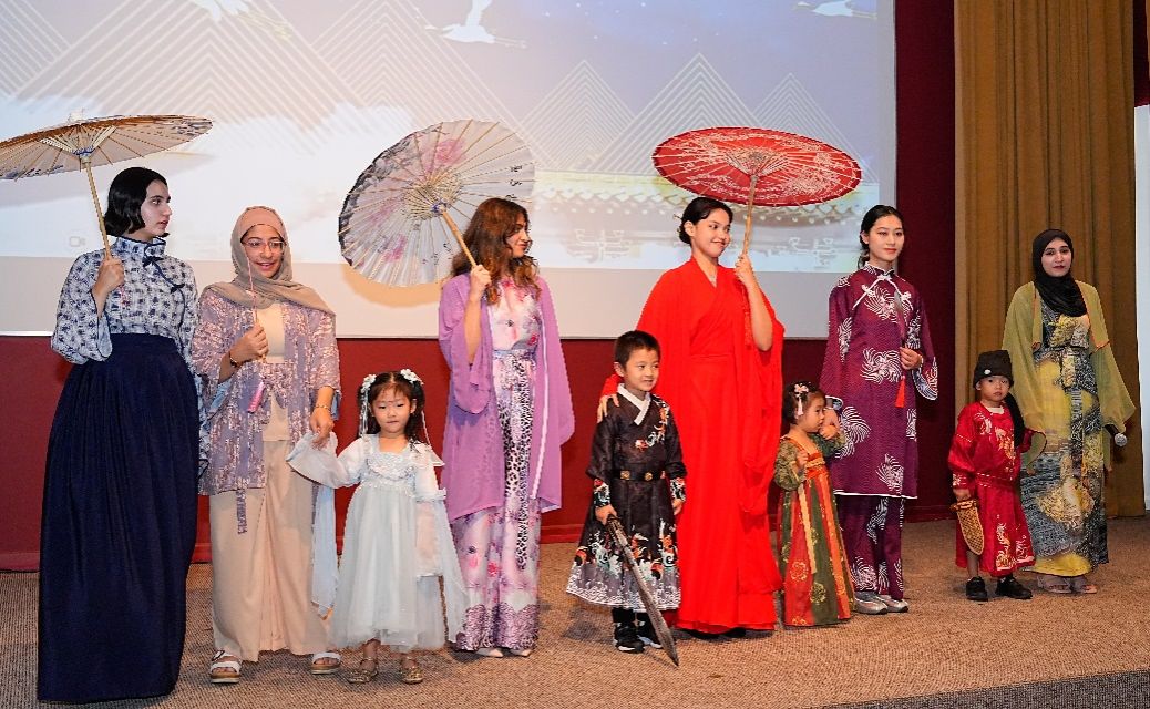 庆典现场,精彩节目接连上演,有传统舞狮、中巴服饰融合秀、陶瓷团扇现场绘制与古琴演奏、诗词吟诵等,中巴友人一同感受中华文化的交流互鉴。