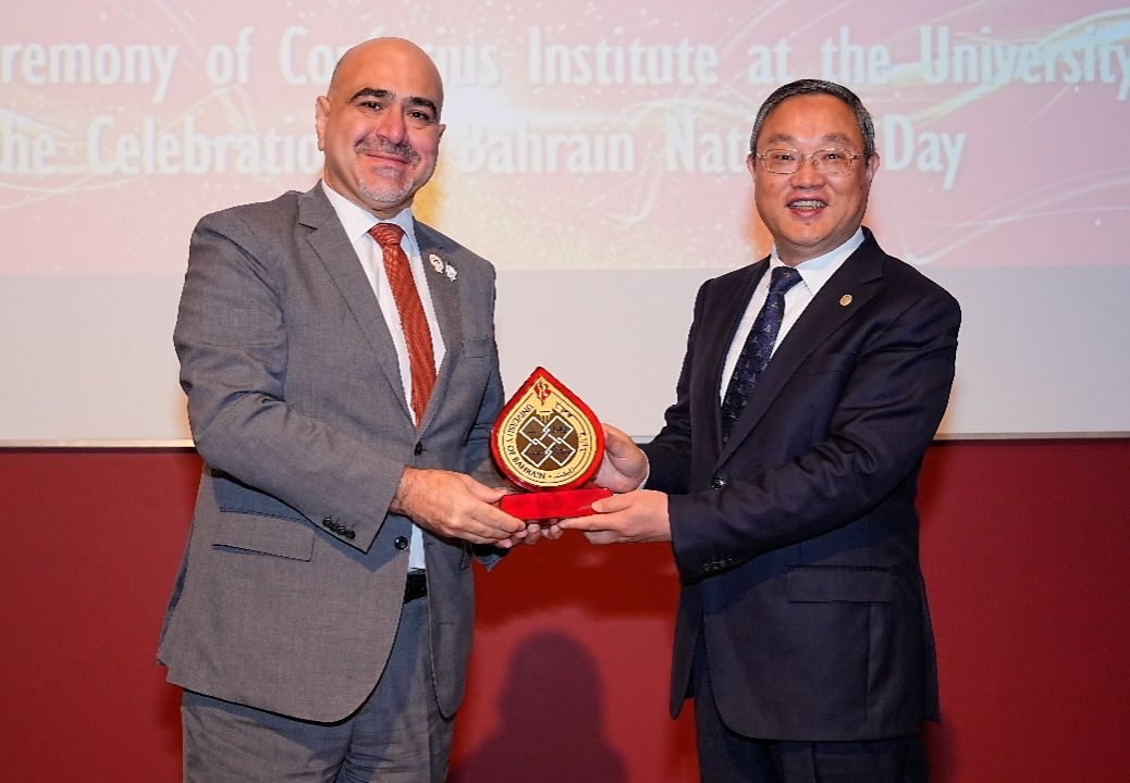 12月10日,巴林大学孔子学院十周年庆典在巴林大学隆重举行。众多领导嘉宾、师生朋友欢聚一堂,共襄盛举。中国驻巴林大使倪汝池,上海大学党委书记成旦红,巴林大学校长福阿德·穆罕默德·阿尔安萨里(Fuad Mohammed Al-Ansari),巴林大学副校长兼孔子学院外方院长默罕默德·雷达·卡德尔(Mohammed Redha Qader),上海大学党委常委、宣传部部长曾军,国际部党委书记王丽娜,人才工作办公室主任姜颖,孔子学院办公室主任徐晓红,孔子学院中方院长周建,以及来自上海大学和巴林大学相关院系代表共同出席本次庆典。巴林中资机构代表、巴林孔院师生以及巴林社会各界友人也共同见证本次盛会。
