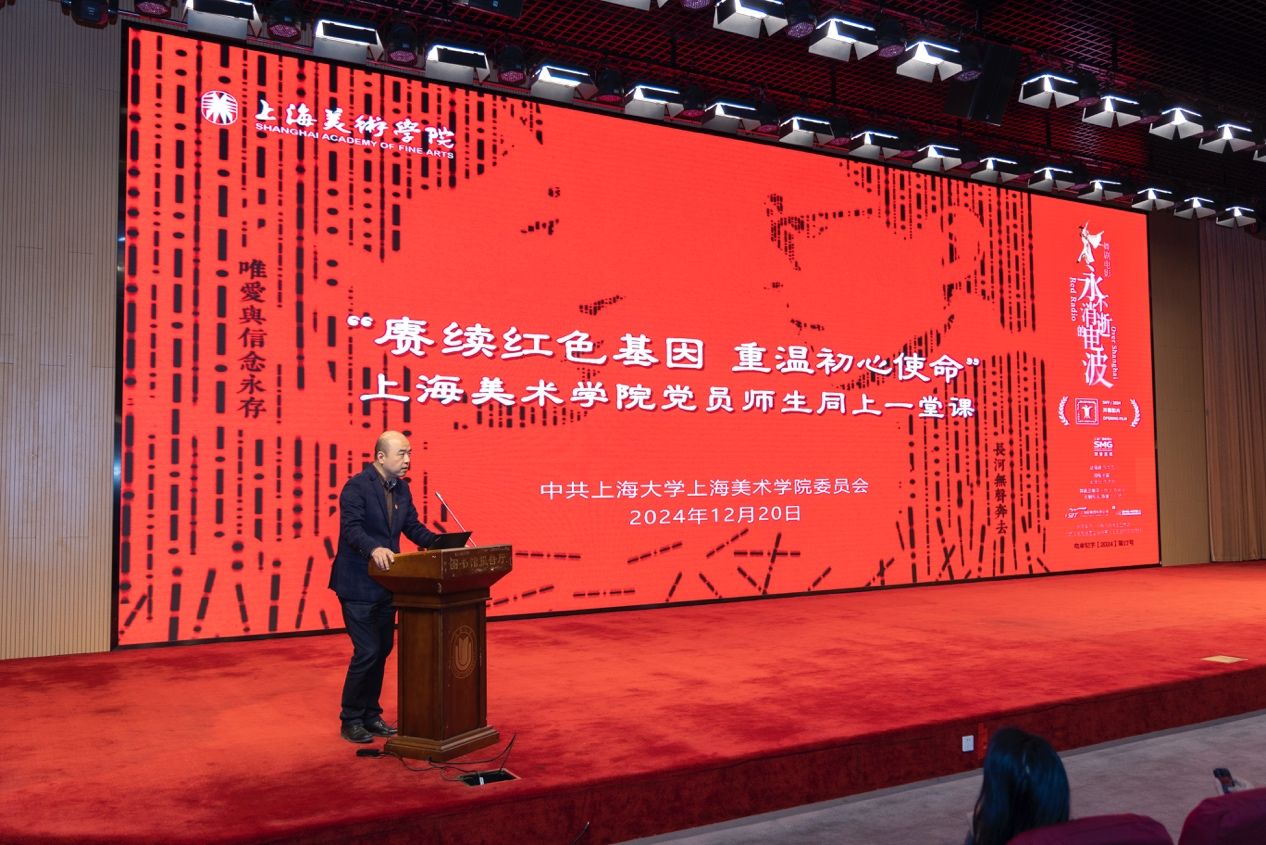 为进一步深入学习贯彻落实党的二十届三中全会精神,12月20日下午,上海美术学院全院党员师生齐聚图书馆报告厅开展党员师生集中学习,观看舞剧电影《永不消逝的电波》,共同追寻红色足迹,从党的奋斗历程中汲取智慧和力量。舞剧电影《永不消逝的电波》制片人王楠正,上海尚世影业有限公司、上海五岸传播有限公司运营服务部总监张伟以及出品方代表共同出席,活动由学院党委副书记、副院长曹俊主持。