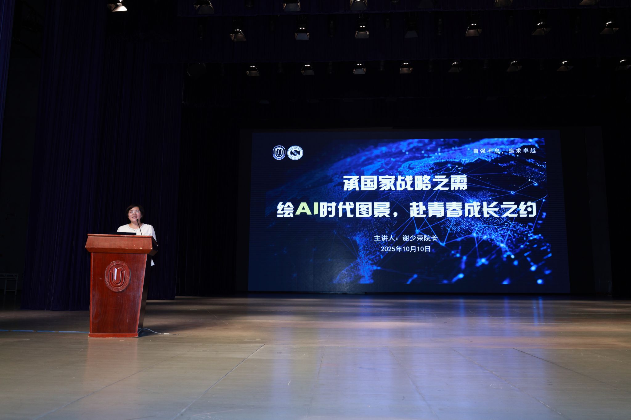 谢少荣院长以“承国家战略之需,绘AI时代图景,赴青春成长之约”为题,为全体新生开讲“院长第一课”。谢院长首先明确时代坐标,指出从习近平总书记对人工智能发展的战略指引,到九三阅兵中计算机技术彰显的大国实力,人工智能已成为“年轻人的事业”。她结合国家创新发展目标,鼓励新生要乘势而上,勇担科技强国使命。