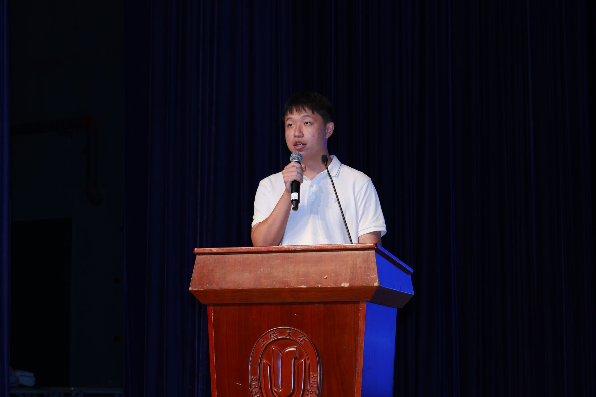 在师长寄语之后,两位新生代表先后上台发言,展现计算机学院新生的朝气与理想。2025级本科生代表王晨旭分享了他初入大学的感受以及对未来四年“代码人生”的期待。2025级研究生代表龚辰结合遵义支教经历分享感悟,呼吁大家把握数字浪潮、对接国家需求。两位代表的发言真挚有力,赢得了现场阵阵掌声。