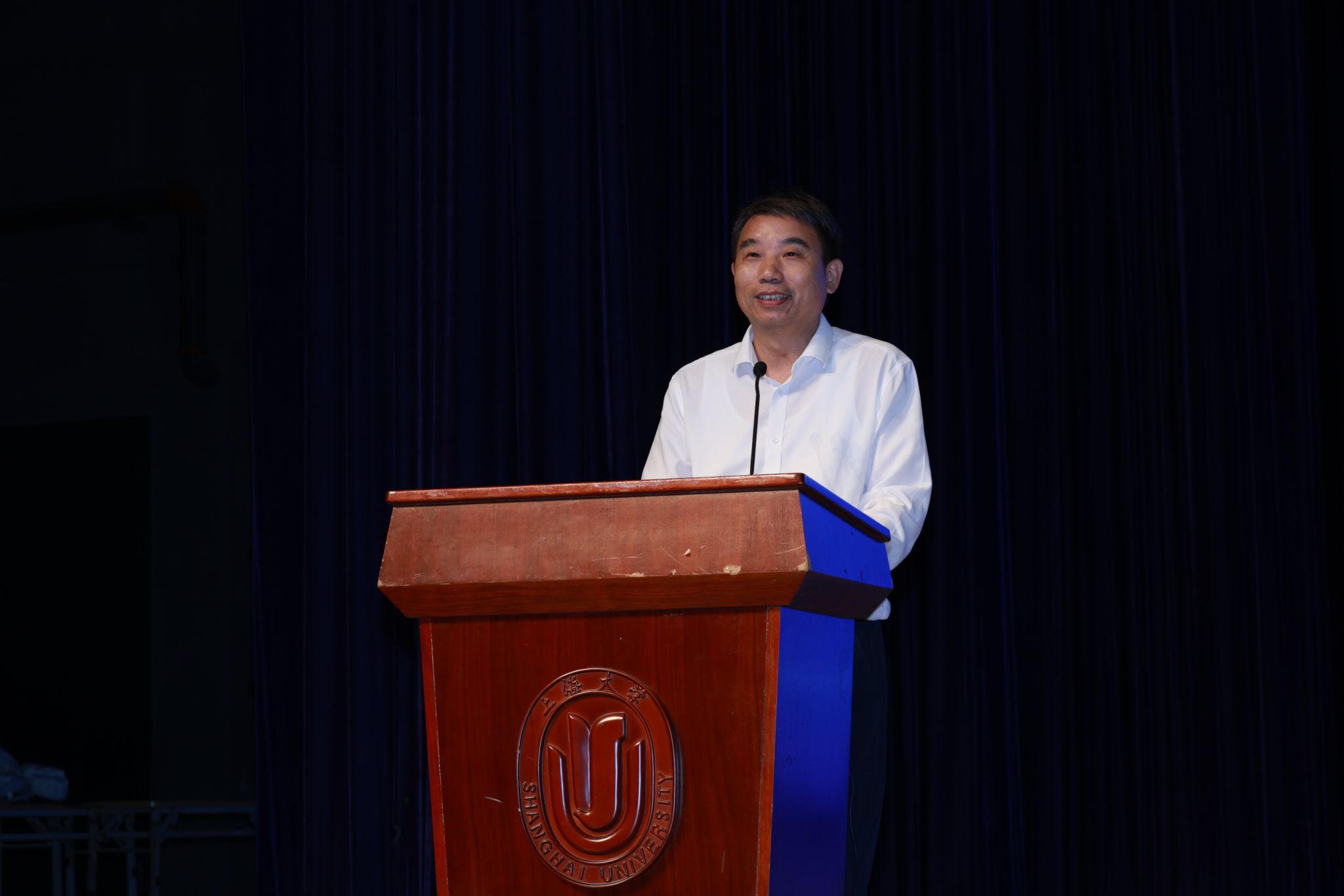 随后,谢院长介绍了上海大学计算工程与科学学院的整体概况,涵盖历史底蕴、师资队伍、科学研究和人才培养等方面。她围绕时代浪潮、学院实力、科研突破、人才培养四大维度层层展开,为新生清晰勾勒出“何为计算机人、当如何成长” 的成长蓝图。讲话中,谢院长以优秀校友为例,勉励同学们:当以代码为舟、AI为桨,勇闯算法 “无人区”,紧扣国家之需校准个人成长航向;既要不惧AI浪潮的 “快节奏”,敢立前沿、玩转潮流,更要坚守基础研究的 “慢功夫”,沉心深耕、筑牢学科根基。她更寄语大家:计算从不只囿于 “01”的冰冷逻辑,更承载着服务社会的温暖初心——当以AI赋能民生、用技术回应现实关切,在数字时代的浪潮中,成长为有担当、有情怀的 “数字筑梦人”。