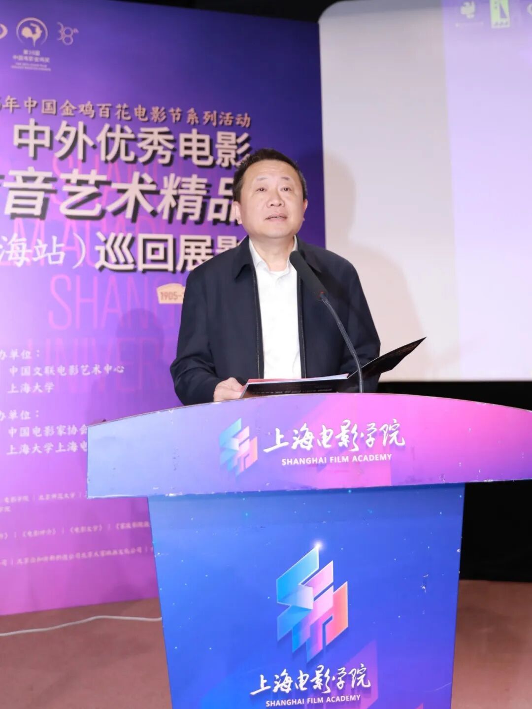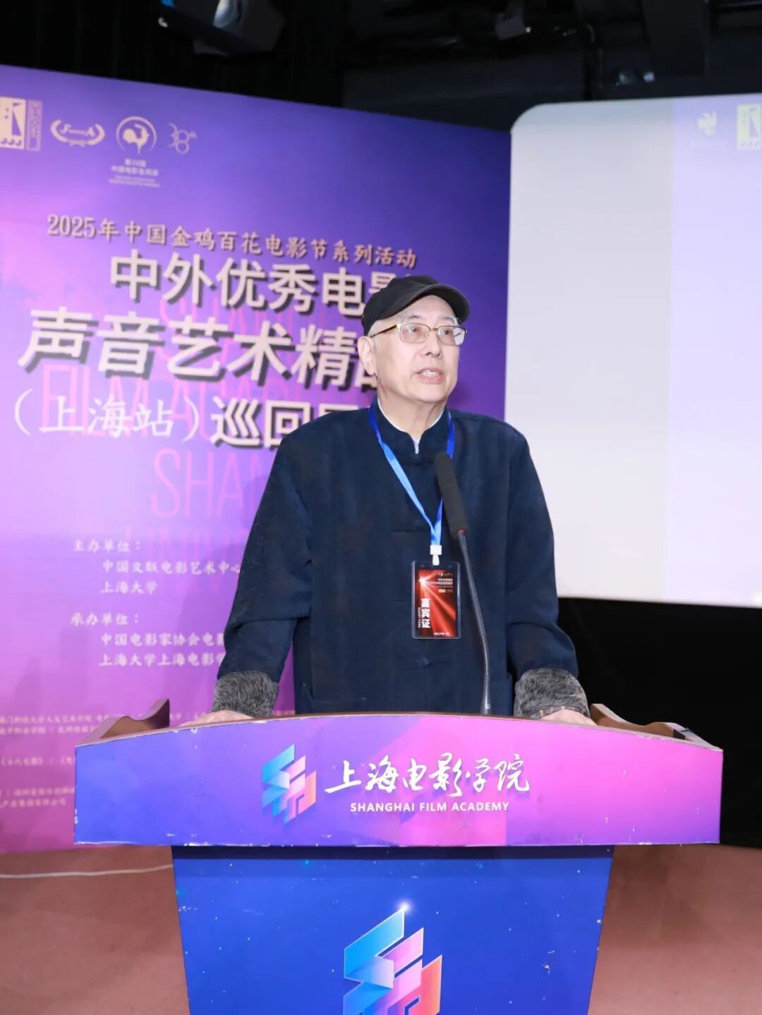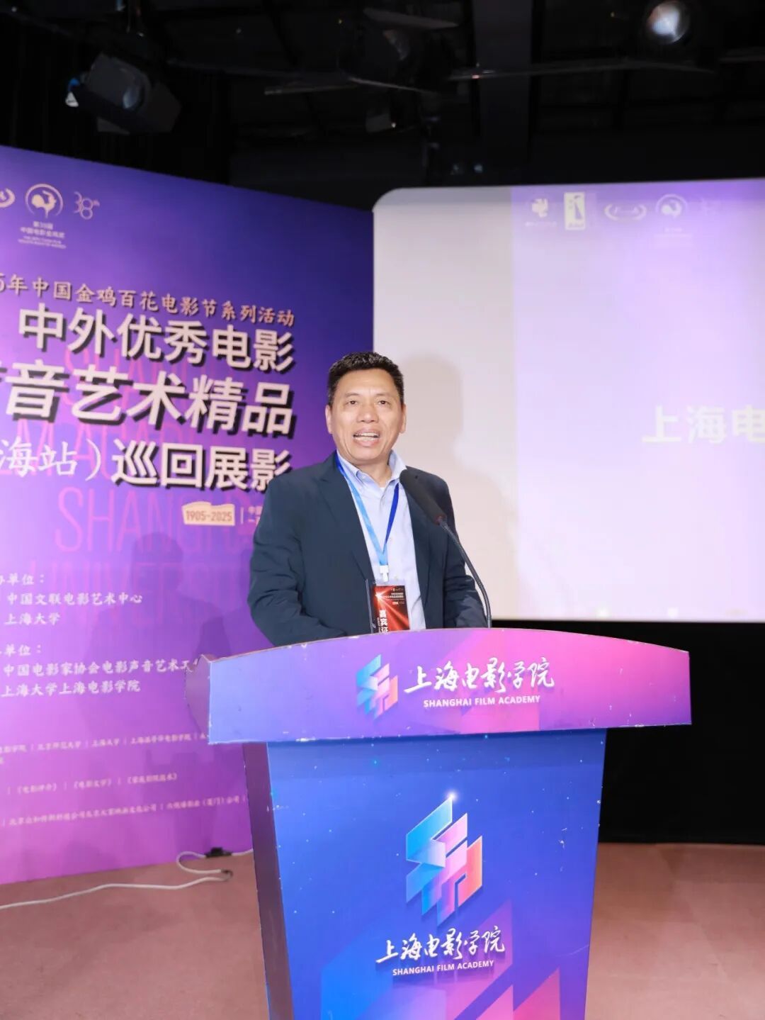 中国电影家协会电影声音艺术工作委员会会长姚国强代表声工委致谢,感谢中国文联、中国电影家协会、中国文联电影艺术中心和上海大学上海电影学院的大力支持。他表示,在金鸡百花电影节期间于上海大学上海电影学院举办巡回展影活动,意义重大、使命光荣。声工委自2013年成立以来,在电影声音创作、录音技术创新和学科建设等方面取得丰硕成果,推动了中国电影声音艺术的发展。本次活动将以最高学术水准和最开放姿态展示中外电影声音艺术魅力,成为中国电影声音事业的重要里程碑,让中国电影的声音更加自信和响亮。