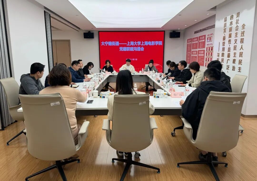 为深化区域化党建格局,推动基层治理与高校发展同频共振,近日,上海大学上海电影学院党委与大宁路街道党工委成功举行党建联建沟通会。双方以“资源共享、优势互补、注重实效、共同发展”为原则,共商合作大计,推动共建项目实质性落地,标志着街校合作进入共融发展的新阶段。