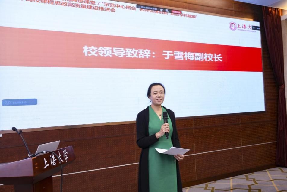 上海大学副校长于雪梅代表学校对本次会议的召开表示祝贺。于校长提出要通过充分发挥教育部课程思政教学研究示范中心的带头集聚效应,着力推动党的二十届四中全会精神第一时间融入各门课程,打造具有思想性、理论性和亲和力的课程思政金课。要积极探索新质学科赋能的融合路径,结合新质生产力发展对人才培养的新要求,积极探索未来技术、新兴学科、交叉学科与课程思政的深度融合,以新视角、新内容、新方法为课程思政注入新的时代内涵与发展动能。她强调,要共同探索课程思政内涵式发展新路径、新机制,深化数字化改革,造就培育高水平教师队伍,推动党的创新理论更加生动、更加深入地走进课堂、滋养学生心灵,打造课程思政与专业课程协同育人的新高地,为教育强国建设贡献上海力量和上大智慧。