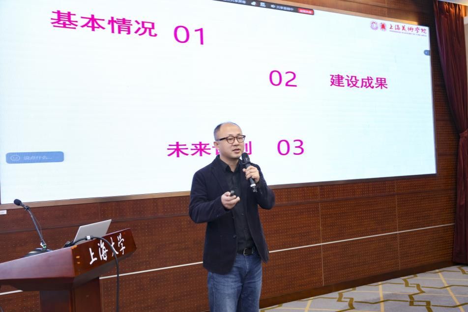 上海大学上海美术学院副院长程雪松教授分享了校级课程思政教学研究示范中心建设经验。一是构建“党委主导、多方协同、教研一体”的工作机制,实现课程思政全覆盖;二是打造“美育中国”思政大课,构建“救国、兴国、强国”三阶段教学体系,推动思政教育与专业教学深度融合;三是创新实践载体,开发“初心之旅”AR虚拟仿真实训,持续开展“摩登田野”艺术乡建实践,建立31个美育基地,推动思政教育从课堂走向社会。中心充分发挥艺术学科特色,将课程思政内化于心、外化于行,探索出一条可借鉴的“艺术+思政”育人新路径。