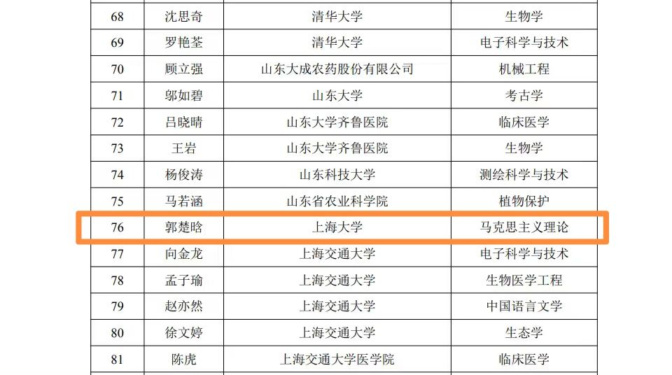 近日,中国博士后科学基金会正式公示了第78批博士后科学基金面上资助拟资助人员名单,全国博士后管委会办公室、中国博士后科学基金会也发布了《全国博士后管委会办公室关于2025年度博士后国(境)外学术交流项目获选结果的通知》,我校马克思主义学院博士后郭楚晗均榜上有名。