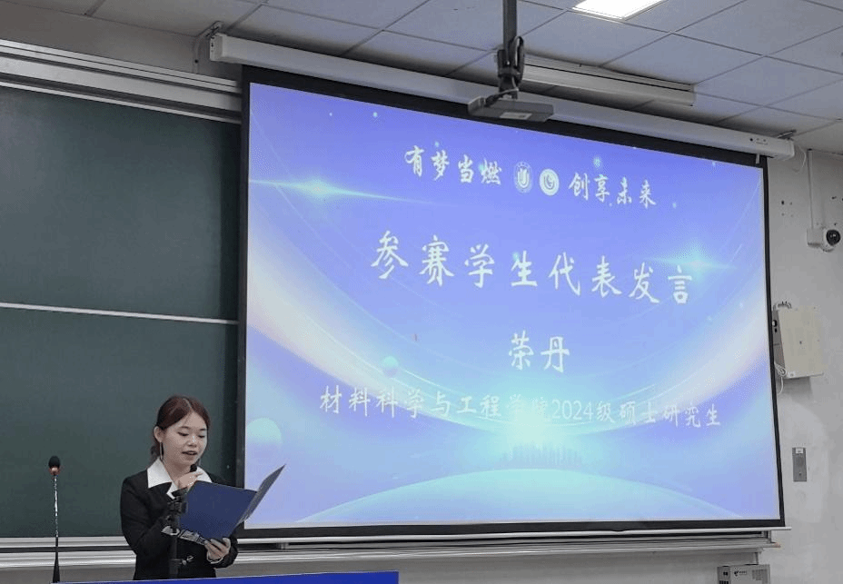 在赛事开幕式上,上海大学党委研究生工作部部长魏宏老师致辞。她首先向各位专家老师和晋级决赛的34支团队由衷地表示感谢和祝贺,并指出“科创杯”历经十一届,已吸引超1300支团队参与,13500多名学生参与比赛,逐渐成为挖掘创新作品、转化创新成果的蓄水池。她期望同学们,要胸怀“国之大者”,勇闯创新无人区;主动打破学科界限,组建跨领域团队,聚焦国家战略需求,挑战关键难题,真正实现跨界创新。接着,参赛学生代表、材料科学与工程学院2024级硕士研究生荣丹则分享了在项目中自学软硬件、与团队协作成长的体会,鼓励大家敢于试错、跨界组队、主动求助。