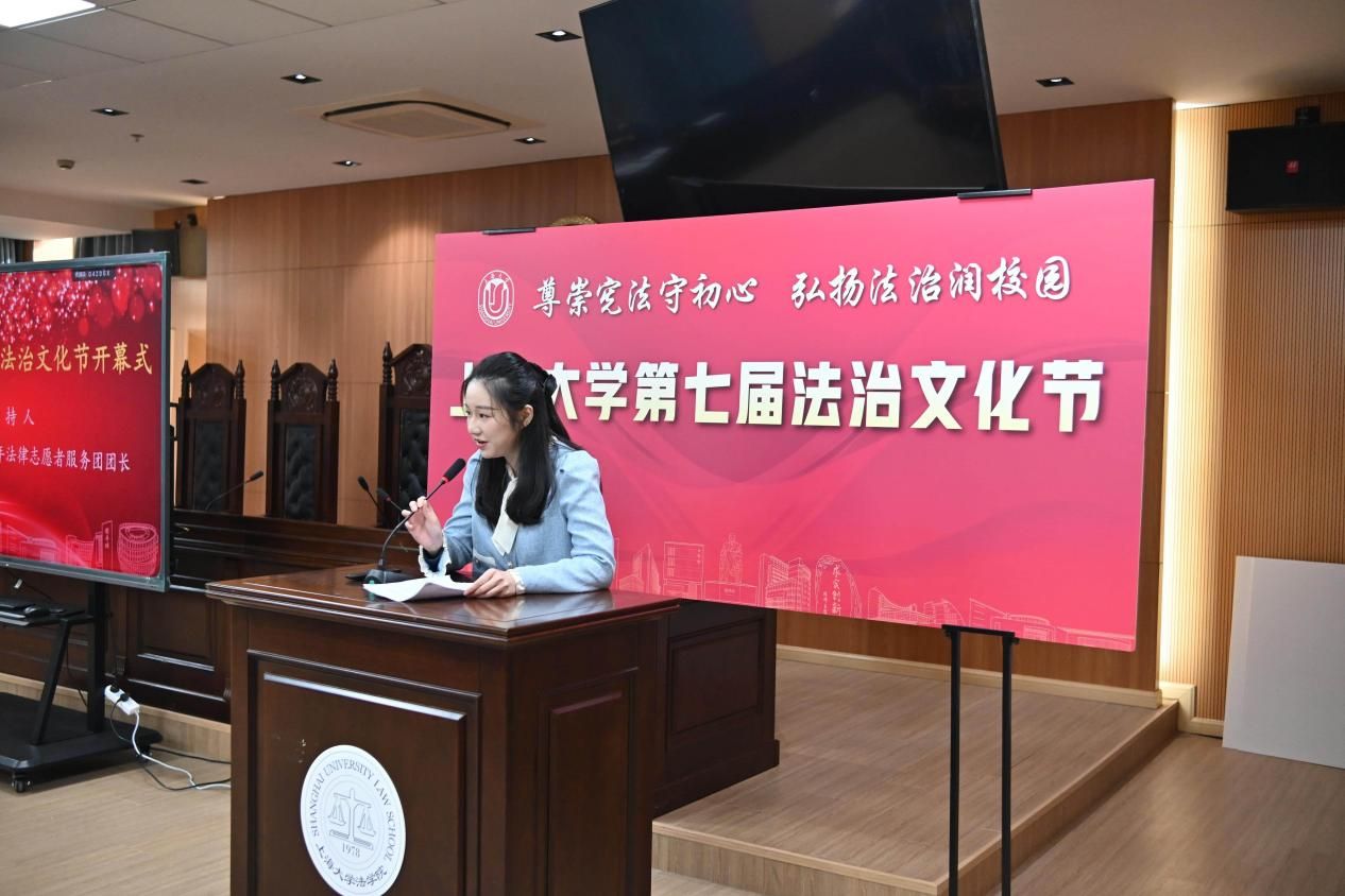 为深入学习贯彻习近平法治思想与党的二十大、二十届四中全会精神,扎实落实习近平总书记关于加强法治宣传教育的重要指示要求,持续提升全校师生的法治意识与道德素养,凝聚法治校园建设共识,为学校“双一流”建设注入新活力,2025年12月4日——第12个国家宪法日当天,由法学院(秋白书院)、校党政办、党委宣传部、学生工作办公室、党委研究生工作部、校团委、校工会等联合主办的上海大学第七届法治文化节开幕式,在宝山校区法学院113模拟法庭举行。本届文化节紧扣宪法主题,以“尊崇宪法守初心,弘扬法治润校园”为核心,将陆续推出宪法日普法活动、求职就业法律宣讲、“法言杯”辩论赛、模拟法庭观摩、反诈骗宣讲等系列特色活动。