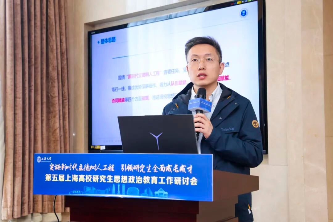 南昌大学卓越工程师学院党委书记、党委研究生工作部常务副部长、研究生院副院长陈世中,华东师范大学党委学生(研究生)工作部副部长万姗姗,上海理工大学党委研究生工作部副部长王张琦,南通大学党委研究生工作部副部长、研究生院副院长刘俊,上海交通大学学指委研工处主任聂唱,浙江理工大学党委研究生工作部思政科科长钟利彬等多位思政工作同仁,分别围绕研究生理论宣讲、产教融合育人、思政育人体系构建、立德树人实践、学科特色思政育人等主题分享实践经验与探索成果。