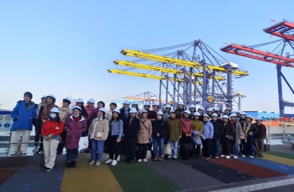 上午,女教授们来到振华重工长兴基地。站在巨型港机林立的码头前,大家亲眼目睹了“大国重器”的震撼规模。当了解到振华重工生产的港口机械已占据全球80%以上市场份额,产品遍布世界一百余个国家和地区时,大家的自豪之情油然而生。
