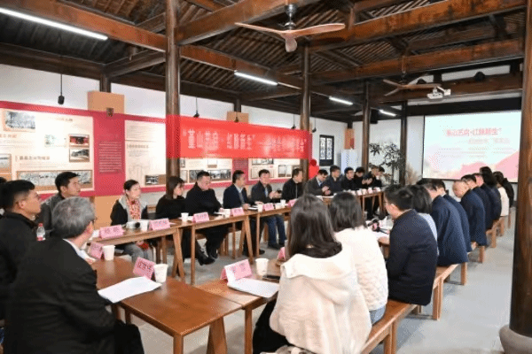 12月20日,在上海大学校友沙文求烈士入学上海大学100周年之际,“堇山艺启·红脉新生”校地合作交流座谈会在宁波市塘溪镇沙氏故居成功举办。此次活动着力促进上大人才优势与宁波区域发展实际相结合,共谋乡村全面振兴。上海大学党委常委、统战部部长曹为民,宁波市委统战部副部长陈善杰,宁波市人民政府驻上海办事处副主任严文渊、鄞州区委常委、统战部部长戴华祥出席活动。来自上海大学、宁波市、宁波大学及鄞州区、塘溪镇的有关领导、专家学者与中外学生代表参加了交流座谈。塘溪镇党委副书记、镇长陈晓俊主持座谈会。