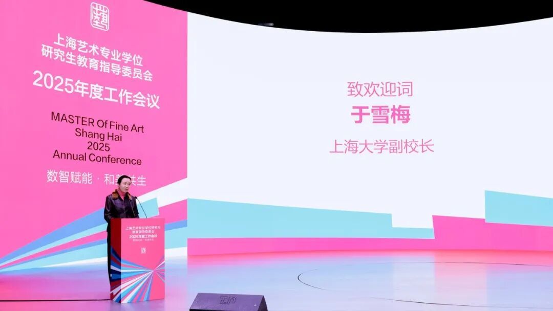 上海大学副校长于雪梅代表上海大学致辞,对会议召开表示热烈祝贺。她指出,专业学位研究生教育是我国研究生教育的重要组成部分,国家相关政策为艺术专业学位研究生教育发展提供了明确指引。作为艺术教育重地,上海艺指委自2014年成立以来成效显著。上海大学将持续支持艺术专业学位研究生教育高质量发展。
