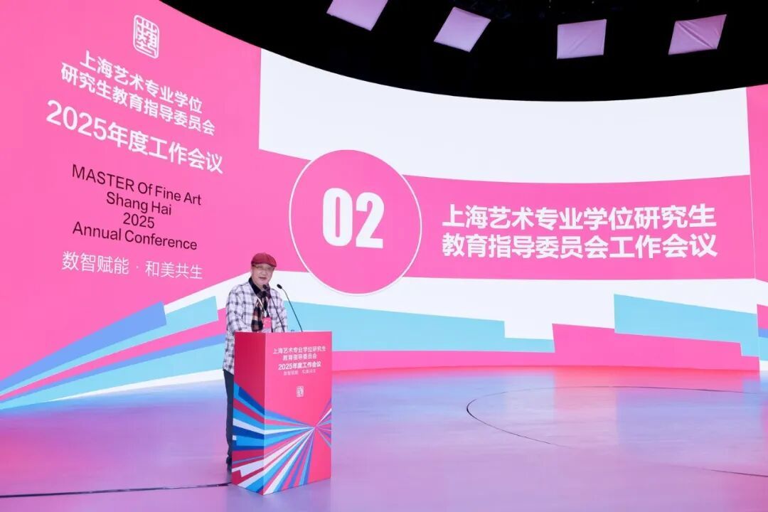 中国学位与研究生教育学会副会长舒慧生在致辞中对会议的召开表示祝贺,并向长期奋战在艺术研究生教育一线的教育工作者致以敬意。他指出,艺术专业学位教育在文化强国建设中具有不可替代的重要作用,高度肯定了上海艺指委成立11年来取得的显著成效和形成的特色经验。希望上海艺指委在“十五五”期间持续深化改革,为教育强国、文化强国建设作出更大贡献。