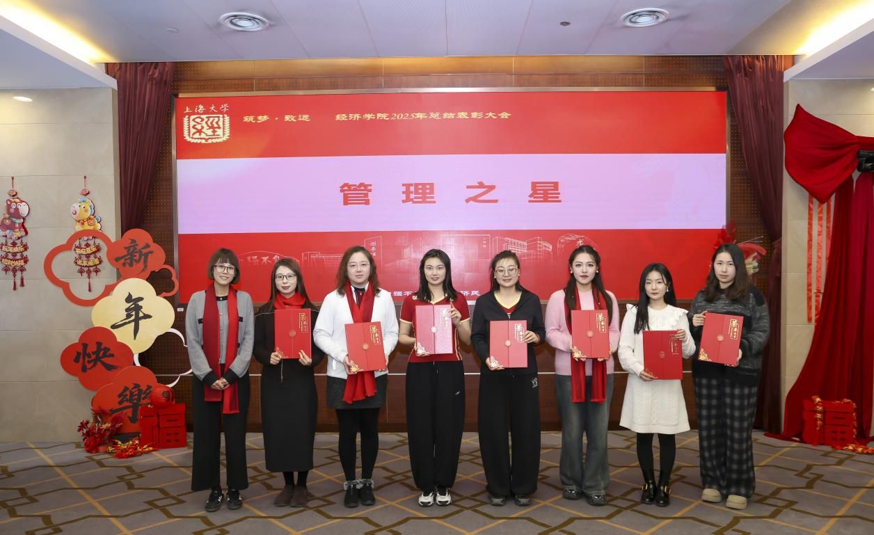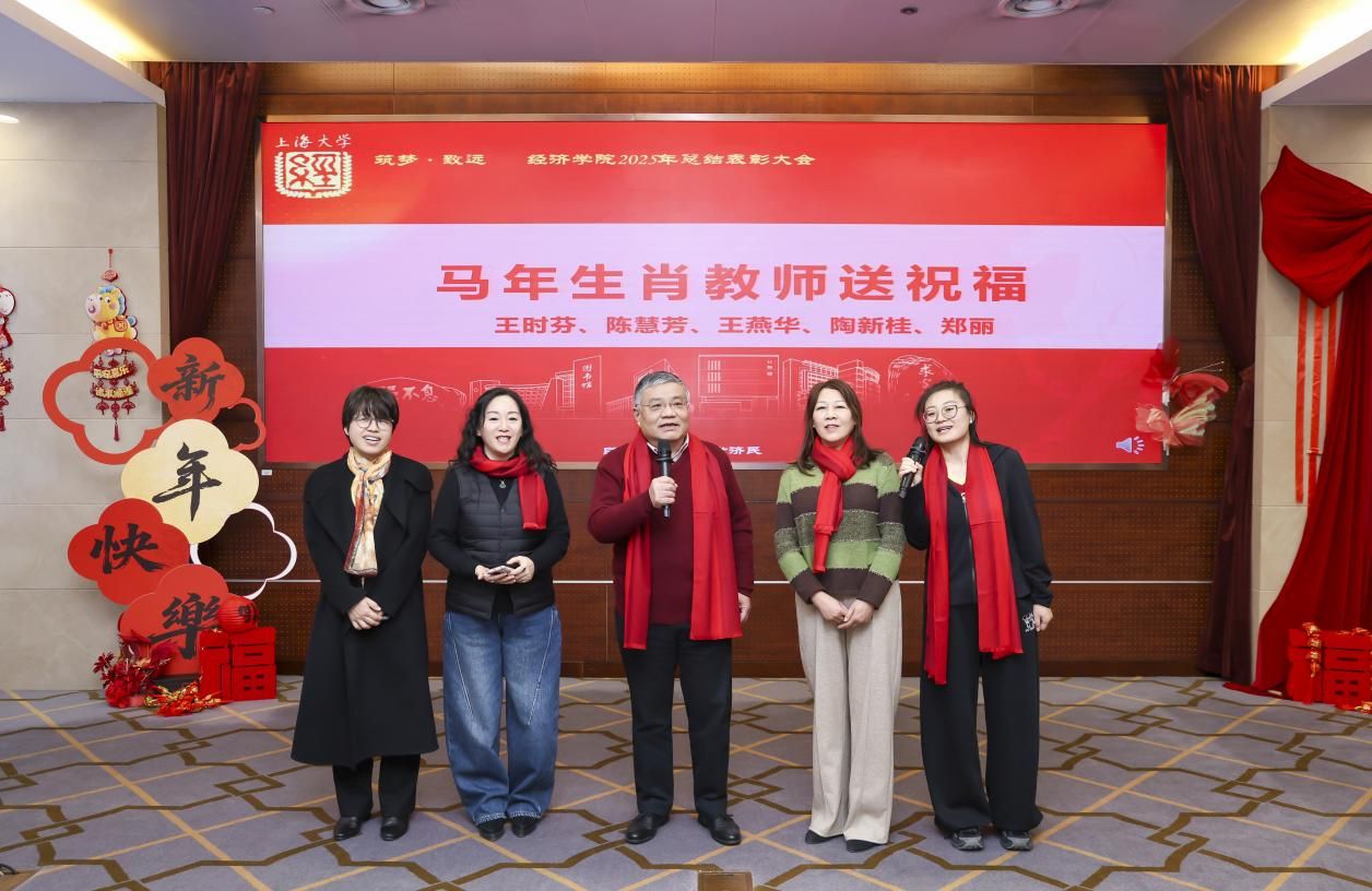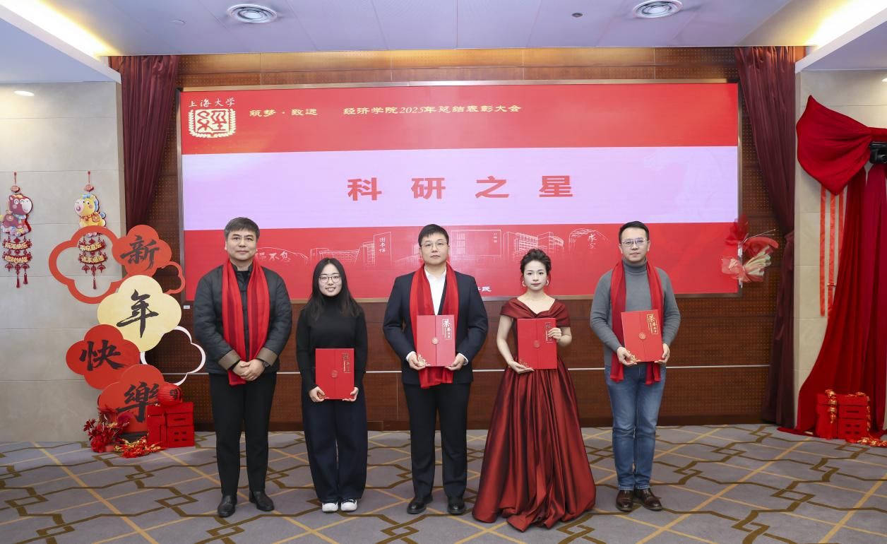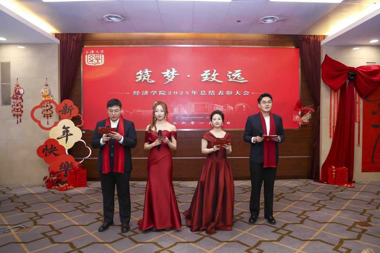 2026年1月9日下午,“筑梦·致远”上海大学经济学院2025年度总结表彰大会在宝山校区乐乎新楼2号楼思源厅举行。东方证券客群发展总部总经理助理邢海亮,东方证券上海分公司副总经理赵军,在学校其他部门任职的学院教师陆甦颖、陈秋玲,文荟书院院长、经济学院原院长沈瑶,经济学院战略管理委员会主任聂永有,上海市统计学会副会长、经济学院校外导师陈新光,新疆生产建设兵团美协原秘书长、泮池书院美育导师潘先纲,与经济学院领导班子、师生代表欢聚一堂,共忆耕耘岁月,共绘发展蓝图。本次大会立足学校“双一流”建设新阶段,紧扣“十五五”规划开局部署,既是对过去一年学院在学科建设、人才培养与教学科研的系统复盘,更是凝聚经院力量、迈向高质量发展新征程致远之旅的再出发。